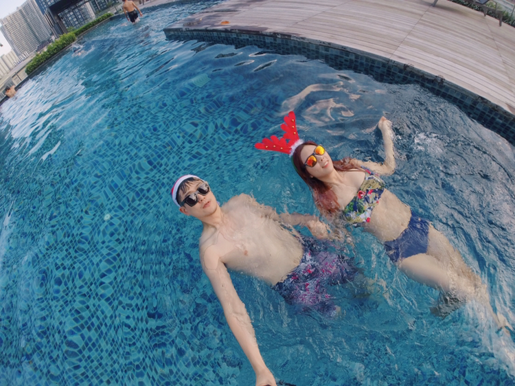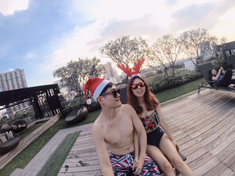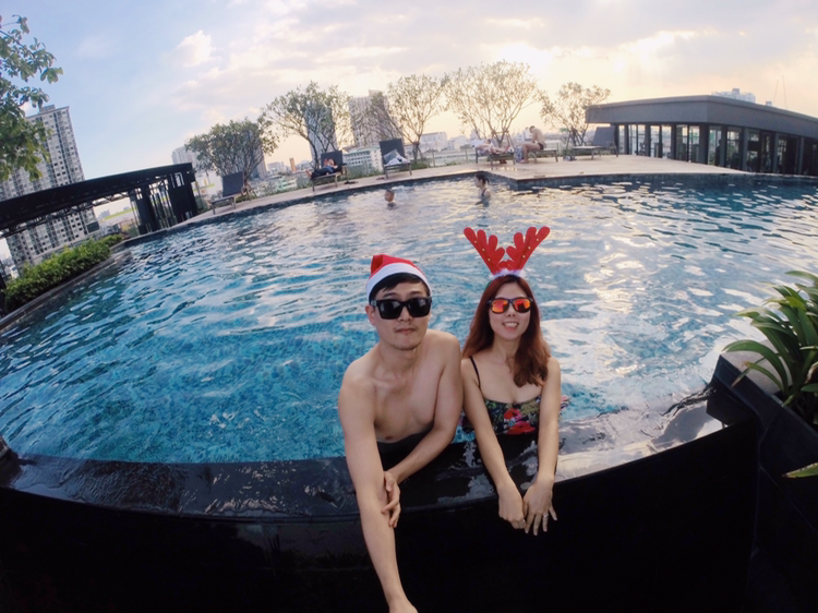 온눗역에 있는 하비토 (Habito 지도는 여기)는 콘도라기보다 아파트 단지? 같은 느낌으로 엄청 세련되고 펜시하다.. 단지 한가지 교통이 불편하다는 점만 빼면 너무 좋은곳!! 풀장에 들어가서 너무 이뻐서 충격! 이곳이 내가 지금 사는 곳과 가격이 같다는 것에 두번째 충격! 근데 우리집은왜.. 풀장없고 분수있지? 분수에 맞게 살라는건가.. 후.. 비즈니스 빌딩숲의 콘도에서 사니까 그런지 살짝 외곽만 나가도 지금 내는 돈으로 정말 좋은집에서 살수 있다는게 억울하기도 하다. 하지만 어쩌겠나.. 왠지 위험할까봐 회사 오분거리에 집을 구하고 싶다고 한건 나였으니.. 서론이 길었지만! 이쁜 풀장에서 놀기로 한다. 난 수영을 잘 못해서 목적은 수영이 아니라 얀모델로써 이쁘게 나오려고 애쓰는 것. 그리고 남편의 친구가 한쪽에서 꿀잠 자고있는 가운데 우리둘만의 추억을 만드는 것. 어제는 힘들게 돌아다녔지만 수영장에서 남편과 여유롭게 수영하고 노닥거리는 자체가 너무 즐겁고 감사하고 그랬다. 내년 우리는 크리스마스에는 어디에서 뭘하고있을까? 어디든 뭘하든 항상 즐겁겠지!
