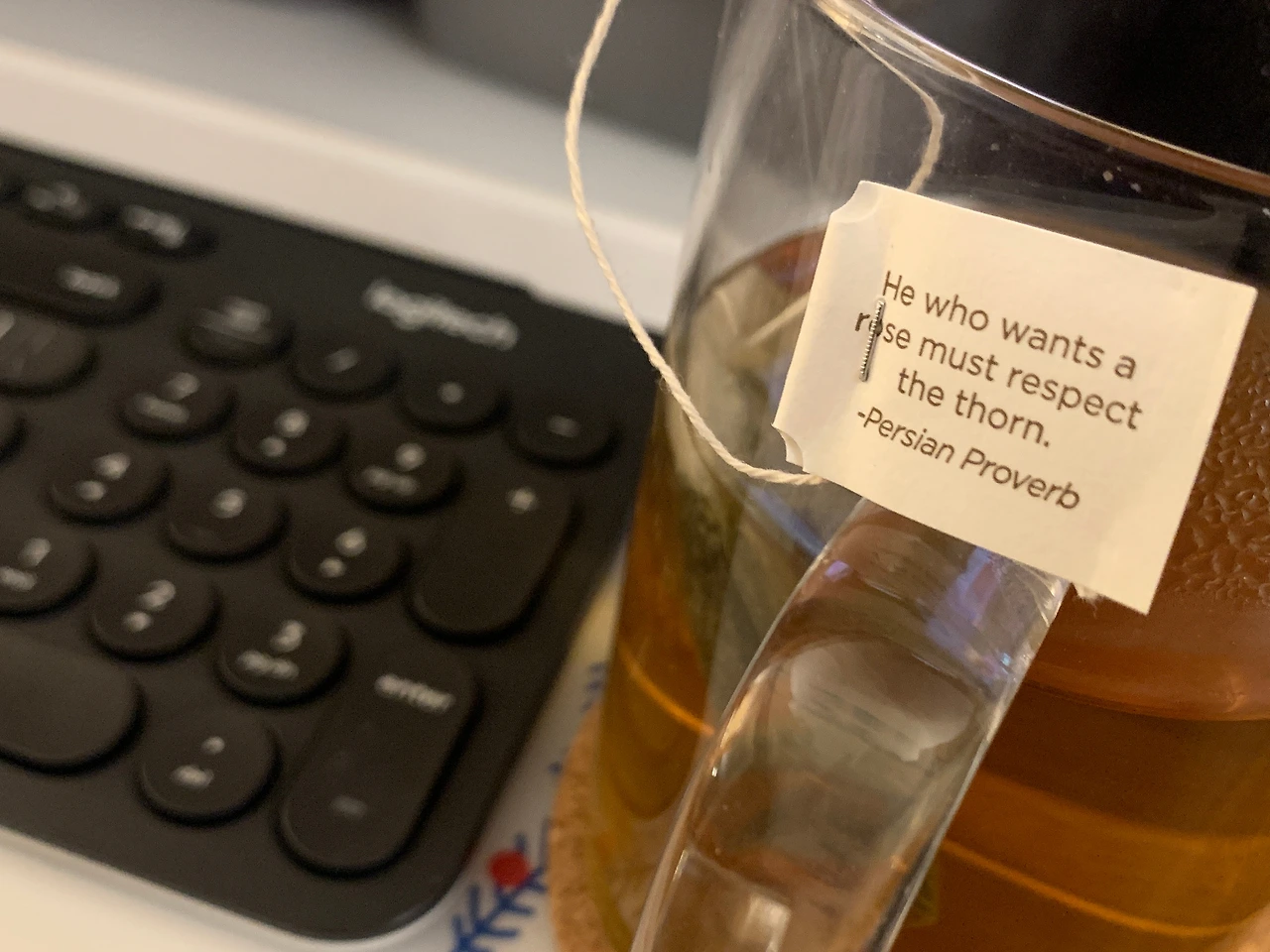 컴퓨터에 내내 붙어있다 차 한잔 준비하는데, 티백에 적혀있는 문구가 지금 내 상황에 너무 와닿는 것만 같아서.