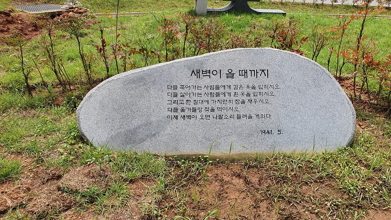 문학대학 강좌에서 윤동주(하늘과 바람과 별과 시)와 조정래(태백산맥)를 중심으로 시 낭송과 작품 배경 등을 공부하였다. 그리고 휴가 기간이었지만 코로나 19로 멀리 가지 못한 대신에 <나 홀로 문학기행>을 시도했다. 집에서 차로 30여분 거리 인지라 가볍게 모자 하나만 걸치고 출발했다. 고속도로를 이용하였더니 남해고속도로 진월 IC에서 5분이면 도착할 수 있을 정도로 접근성은 좋았다. 마침 문화해설사가 오랜만에 출근했다면서 10여 분간 <윤동주 시비공원>에 대한 설명을 해주어서 매우 유익했다. 다음은 강의시간에 들은 내용과 현장 설명 등을 토대로 정리해본 글이다. 윤동주 시비들이 세워진 광양시 망덕포구는 위치가 남해고속도로 섬진강 휴게소의 남쪽이고, 임진왜란 당시 배를 제작하던 선소가 있던 자리이다. 일설에 의하면 네 척의 배가 여기에서 제작되었다고 한다. 윤동주 유고 원고가 보관되어 있던 정병옥 가옥으로부터 오백여 미터쯤 될까? 걸어서 사오분 거리에 있다. 이곳은 정병욱과 윤동주가 믿음과 우정이 살아 숨 쉬는 공간이다. 정병욱과 윤동주가 만나게 된 계기가 있다. 정병욱은 윤동주보다 나이는 5년 아래이고 연희전문대 2년 후배이다. 정병욱이 연희전문대 1학년 재학 때 『뻐꾸기의 전설』이라는 글을 썼는데 그것은 전쟁에 관한 글이었다. 이 글을 읽고 같은 학교 3학년으로 재학 중이던 윤동주가 정병욱의 교실을 찾아간다. 이때부터 그들은 기숙사 방을 함께 쓰며 1년 7개월간 서로 믿고 의지하면서 교류하였다. 그러다가 1941년도 윤동주가 일본으로 유학을 가게 된다. 도일 전에 윤동주는 자신의 육필 원고(하늘과 바람과 별과 시) 세 부를 준비하여 한 부는 연희전문대의 이양하 지도교수, 한 부는 본인, 나머지 한 부는 믿을 만한 후배인 정병욱에게 맡기고 떠난다. 그 후 1944년도에 정병욱마저 학도병으로 일본에 끌려간다. 1945년 8월에 조선이 해방되었는데 정병욱이 도일하던 때는 일제가 패망을 1년 앞두고 마지막 발악을 하던 무렵이었다. 1944년 일본은 태평양전쟁에서 전쟁물자가 부족해지자 당시 식민지 상황이었던 조선에서 전쟁 자원이 될 만한 것들을 모두 쓸어갔다. 심지어 문고리, 대야, 숟가락까지 공출해가는 바람에 제사에 쓸 숟가락을 항아리에 넣어 땅에 묻어두는 것이 풍속이 될 지경이었다. 이때 우리의 슬픈 역사에 드러난 것처럼 소녀들은 정신대로 청년들은 총알받이로 전쟁터로 끌려간다. 학도병으로 끌려간다는 것은 십중팔구 죽는다는 것을 의미하던 상황으로 살아서 돌아온다는 보장이 없었다. 그것을 알기에 정병욱은 자신의 귀중품을 어머니에게 맡기는데 그중의 하나가 윤동주의 육필 원고였다. 그러면서 “이 원고는 동주 형이 쓴 원고인데, 저나 동주형이 돌아오지 못하거든 이 원고를 연희전문대에 전해주세요. 그러면 교수님들이 알아서 할 것입니다.” 하고 어머니에게 부탁한다. 정병욱의 아버지는 교사 출신이었고 어머니도 배우신 분이었다. 어머니는 슬기롭게 귀중품들을 항아리에 넣고 마룻바닥을 뜯어 그 아래에 보관했다. 윤동주는 해방 6개월 전 후쿠오카 형무소에서 외마디 비명을 지르며 순국하고 정병욱은 구사일생으로 살아서 돌아온다. 정병욱은 오사카 포병부대에서 포탄이 날아가는 각도를 조절하는 임무를 맡았고 그러다 보니 전사할 확률이 낮았던 것 같다. 그가 살아 돌아와서 윤동주가 순국했다는 사실을 접하고 윤동주의 원고를 세상에 알리기로 다짐한다. 귀국한 정병욱은 서울대학에 진학하였고 나중에 서울대학 교수가 된다. 그리고 우리 국문학을 어느 정도 궤도에 올리는 데 상당한 공헌 하며, 판소리 이론을 정립한 것도 정병욱 교수의 역할이었다. 또한 윤동주를 세상 밖으로 내보는 작업도 그의 역할 중의 하나이다. 교과서에 『서시』,『자화상』이 실리면서 세상 사람들이 윤동주에 대하여 관심을 갖게 되었다. 지금 우리들의 가슴에 윤동주가 가슴속에 살아남아 있는 것은 그의 생각과 올곧은 정신과 행동이 일치했기 때문일 것이다. 윤동주는 시집을 세상에 낸 적도 없고 어디에 등단한 적도 없는 무명 시인으로 그가 생존해 있는 동안에 일반인에게 널리 알려진 사람이 아니었다. 한반도의 북쪽 북간도에서 태어난 그가 한반도 남해안의 중앙에 위치한 바닷가 광양에서 그의 존재가 세상에 알려졌다. 그런 윤동주의 시는 이제 한반도를 넘어 일본이나 중국에서도 사랑을 받고 있다. 조선이 여러 가지 문제점을 안고서도 오백 년씩이나 왕조를 지탱한 것은 세계사에 유래가 없는 극히 예외적인 경우이다. 이것을 가능케 했던 것은 결국 민초들이나 불사이군과 같은 선비적 의식이 있었기에 가능했다. 나라가 어려울 때 독립운동을 하거나 적지 않은 고뇌와 그에 따른 행동이 일치되어 나타난 결과들이 현재의 우리가 있게 된 원동력이라고 할 것이다. 한편 1917년에 태어나 일본 식민지 국민으로 살아가는 보통사람들이라면 윤동주처럼 살아가기가 쉽지 않았을지도 모른다. 왜냐하면 이미 나라는 일본에 빼앗겨버렸고 독립을 기대할 수도 없는 상황이라면 현실에 적응해 나가는 것이 오히려 쉬웠을 것이기 때문이다