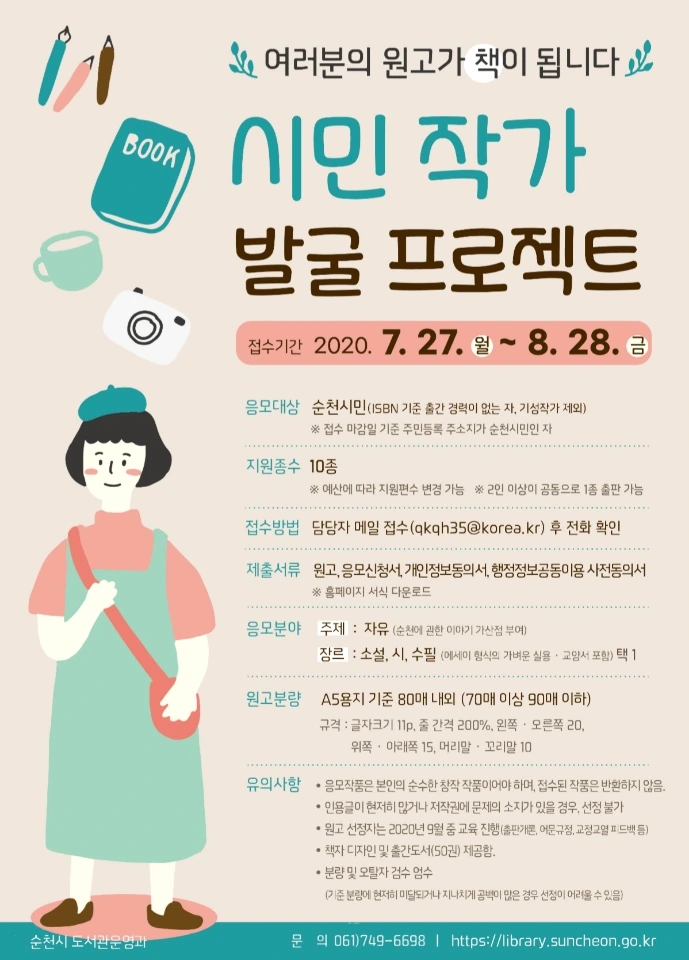 지금부터 2개월 전쯤, 우연히 이곳 브런치에서 활동하시는 감오행 서상훈 작가님의 글을 통해 2020년 하반기 "여러분의 원고가 책이 됩니다" (순천) 시민작가 발굴 프로젝트 원고 모집! 공고를 보게 되었습니다. 작가님과는 일면식도 없으나 좋은 정보를 제공해주심을 우선 감사드립니다. 이 공고 내용은 우리 문학교실 문우님들과 공유했습니다. 당연히 전담 강사님도 적극 지원해 보라고 응원과 지도편달을 하셨습니다. https://brunch.co.kr/@kamohaeng/269