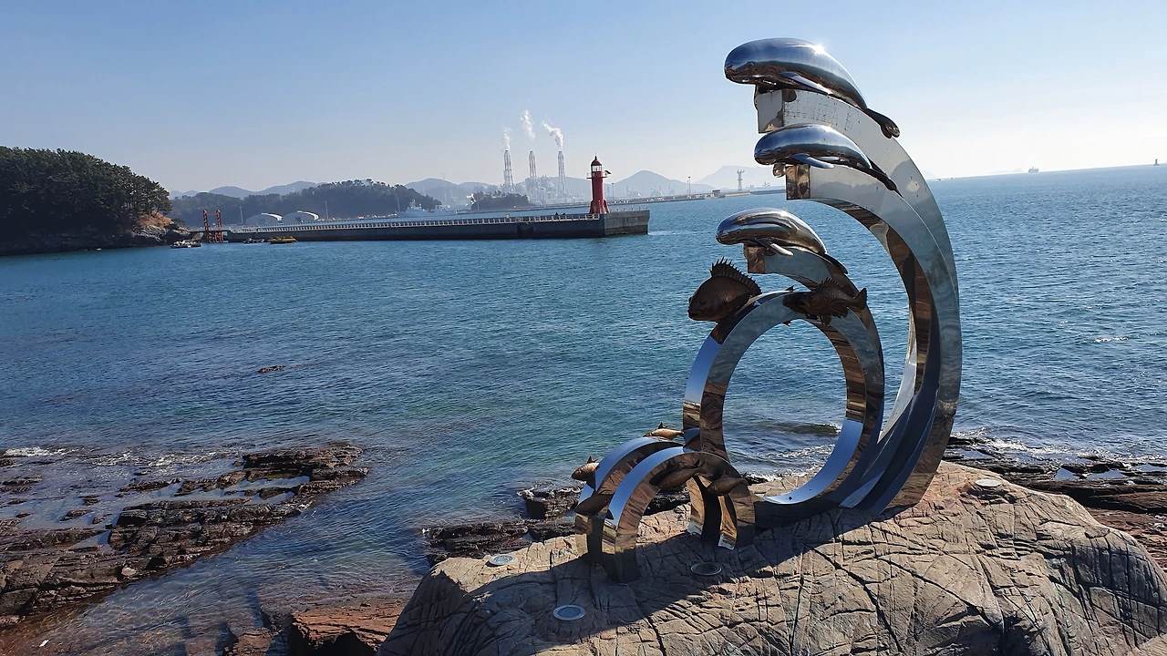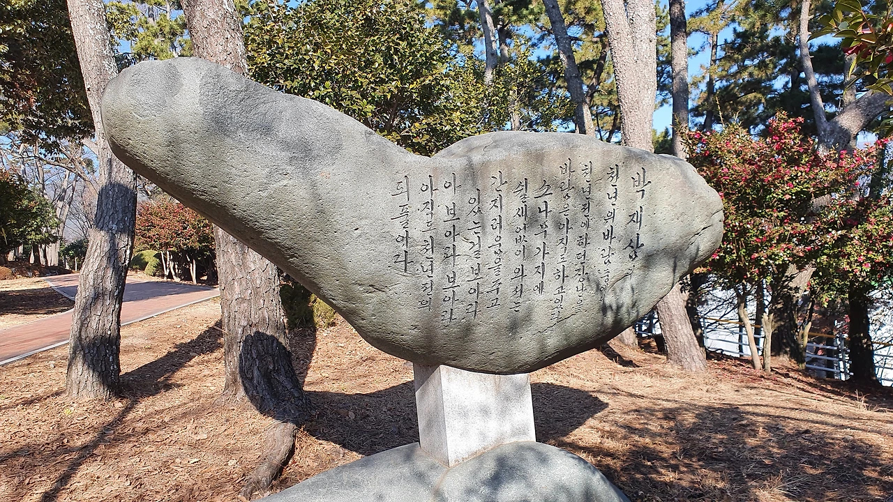 그러나 어찌하랴. 이미 상황은 이리되어 버린 것을. 건물 밖을 잠시 서성이다가 공원을 한 바퀴 쭉 돌아보았다. 해안가 언덕 위에 자리한 노산공원 안에는 곳곳에 붉은 동백꽃이 피고 지고, 한편에 설치된 박재삼 시인의 「천년의 바람」 시 일부가 기념비에 새겨져 있었다.