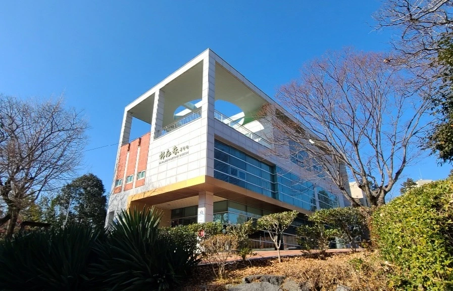 이튿날 손이 시릴 정도로 쌀쌀한 아침 공기를 헤치고 찾아간 식당에서 콩나물국밥 한 그릇을 비우고, 유유히 노산공원으로 오르는 계단을 걸어 문학관을 향해 걸어 올라갔다. 입구 벤치에 앉아있는 박재삼 시인의 좌상 옆에 나란히 앉아 기념사진을 한 장 찍고 기념관 안으로 들어가려고 했더니 문이 잠겨 있었다.