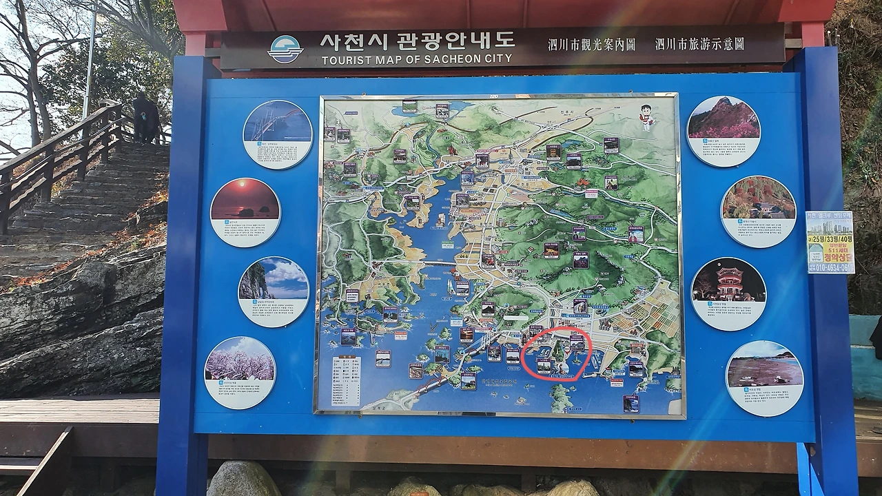 오후 늦은 시간에 도착한 삼천포항. 시장기가 들어 저녁 식사를 하려고 적당한 식당을 물색하여 주차하려는데, 식당 근처에 노산공원이 있고 공원 입구에 사천시 관광안내도가 서 있었다. 그리고 공원 안내판에는 박재삼 문학관이 표기된 게 아닌가?