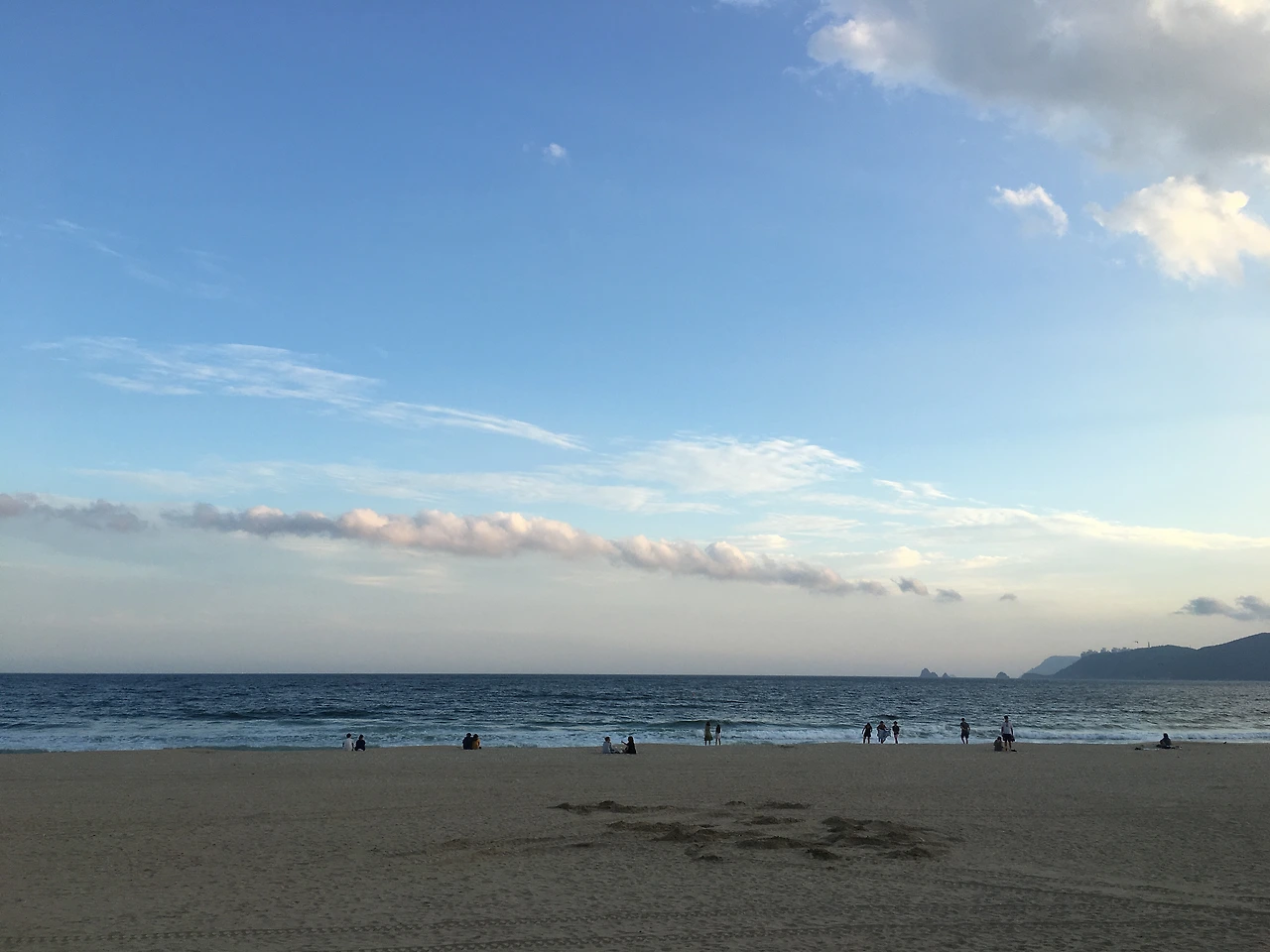 해변에 앉아 놀러 온 사람들과 탁 트인 바다, 갈매기 소리를 보고 듣고 있으면
