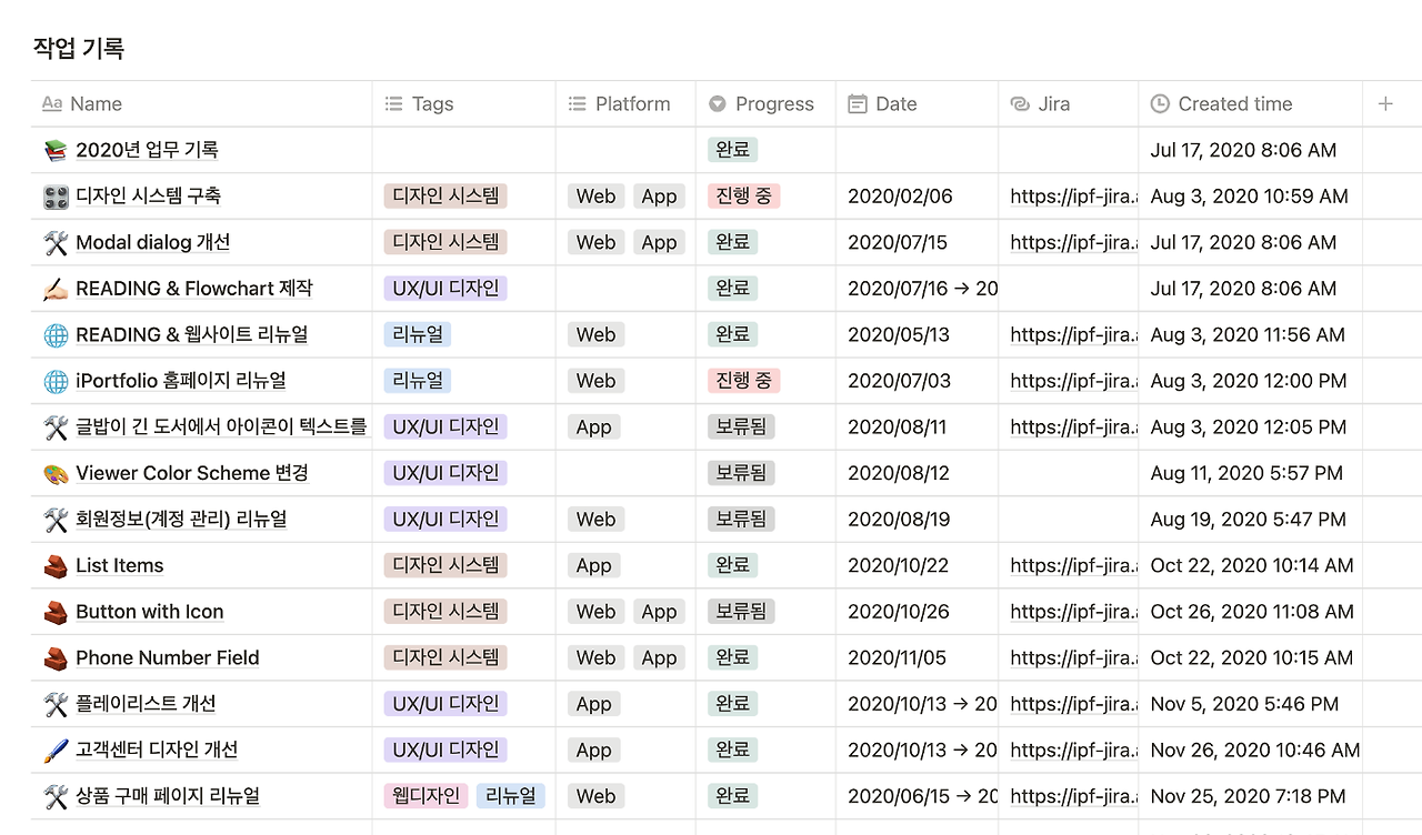 내가 수행한 작업을 기록하는 것의 중요성을 깨닫고 꾸준히 기록하고 있다. 이 기록들은 나의 포트폴리오가 되고, 내가 얼마큼 성장했는지를 가늠할 수 있는 지표가 된다. 작고 소모적인 성격의 일회성 업무는 제외하고, 의미있고 기록할 가치가 있는 작업을 기록하고 있다.