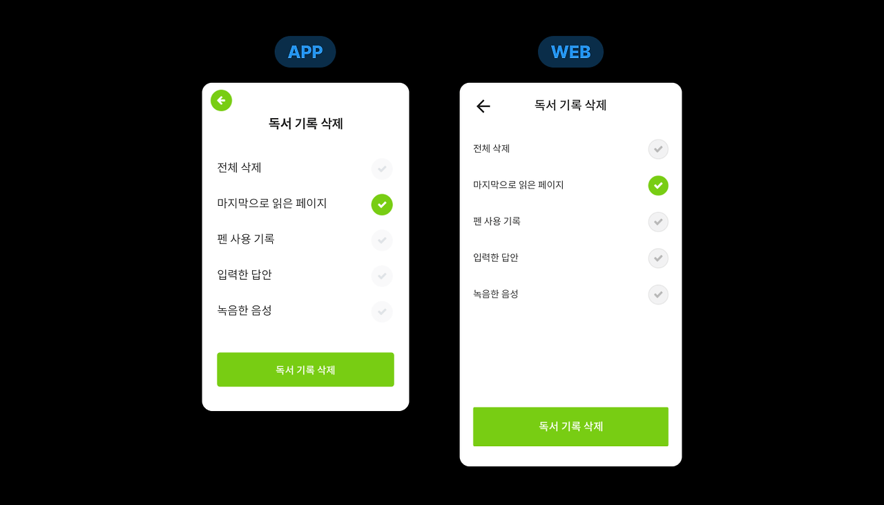 일관되지 않은 UI가 사용성을 떨어트리고 있었다. 터치 디바이스인 앱과 마우스를 사용하는 웹의 환경 특성상 다른 UI를 사용할 수는 있지만 폰트 굵기, 외곽선 둥글기, 외곽선 컬러 등 디자인 스타일이 다른 것은 별것 아닌 것처럼 보일 수 있어도 자칫 고객의 신뢰를 잃게 만들 수도 있는 문제였다. 또한 비슷한 화면의 디자인이 다르다는 것은 곧 심볼로 연결되어 있지 않다는 것이고, 디자인 관리가 어려워진다는 것을 의미한다.