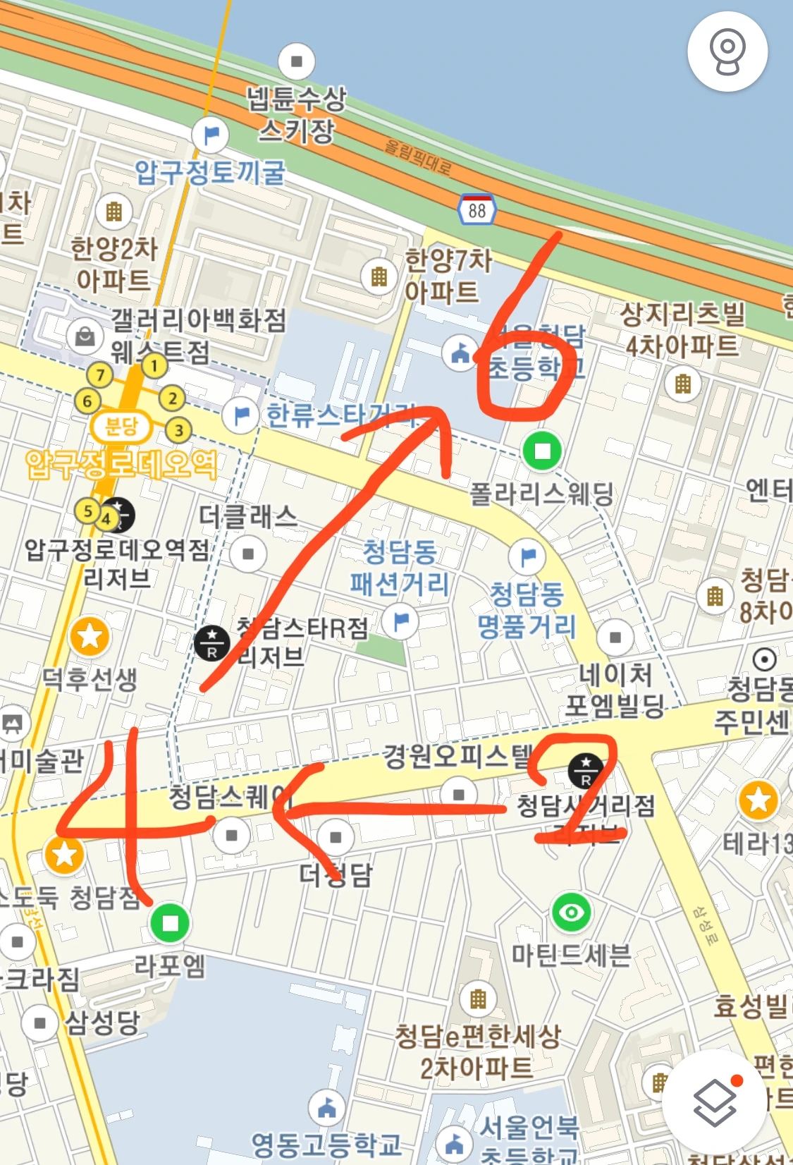 오늘 우리가 둘러볼 드레스 샵은 마틴드세븐, 라포엠 그리고 폴라리스 웨딩. 오후 2시부터 6시까지 한 시간 텀을 두고 3곳을 돌아보는 일정이다. 이러한 이유로 드레스 샵들이 다들 청담동에 몰려있나 보다.
