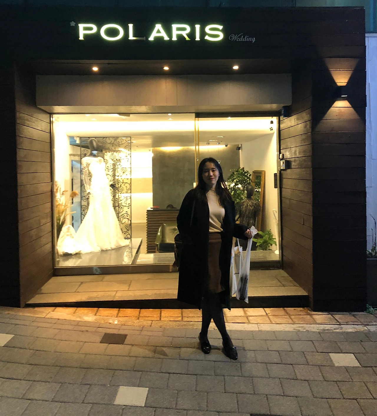 이제 마지막 드레스 투어가 남았다. 언제 그랬냐는 듯이 다시 화창한 날씨. 아직도 물기가 남아있는 척척한 코트가 괜히 민망하다. 세 번째 장소는 폴라리스 웨딩. 청담동에도 조금 떨어진 청담동 명품거리 쪽이었다. 이동하면서 오늘 입었던 첫 번째, 두 번째 샵의 드레스들을 한 번 떠올려 보.. 지만 이미 기억이 잘 나지 않는다. "어떤 드레스가 좋았어?" 이미 8개의 드레스를 입어본 터라. 기억이 희미하다. 두 곳 만 돌아도 이렇게 헷갈리는데 하나를 더 가야 하다니. 서로 이런저런 얘기를 나누다가. 문득 이렇게 결혼 준비하는 게 재미있고, 신기하다는 얘기를 나눈다. 그래도 재밌지??
