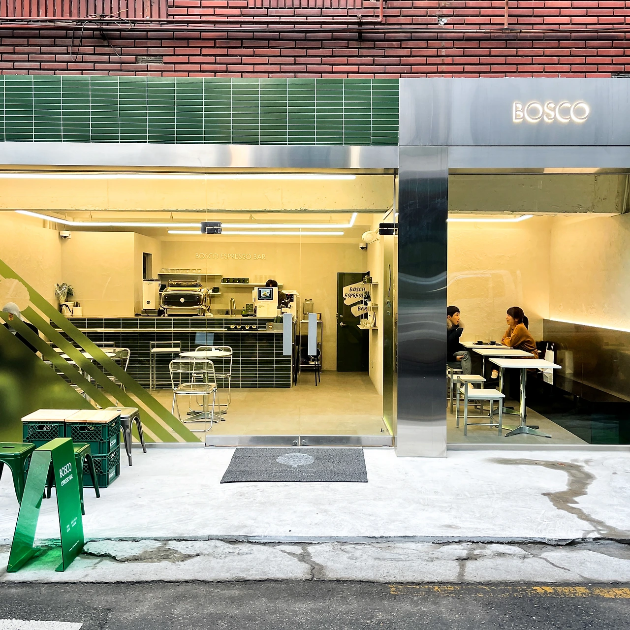 보스코는 이탈리아어로 ‘숲’을 말한다고 한다. 숲을 테마로 매장 전체를 짙은 그린 톤으로 맞추었는데 에스프레소 크림색과 대비되며 꽤나 인상적이다. 브랜딩 차원에서도 한눈에 들어오고. 겨울의 흰 눈과도, 여름의 녹음과도 잘 어울릴 것 같은 곳. 눈이 내리던 날 매장 전경을 촬영한 사진이 있던데 너무 분위기가 좋아서 기억에 남는다. 겨울이 가기 전에 눈 오는 날 맞춰서 꼭 한 번 들러봐야지.