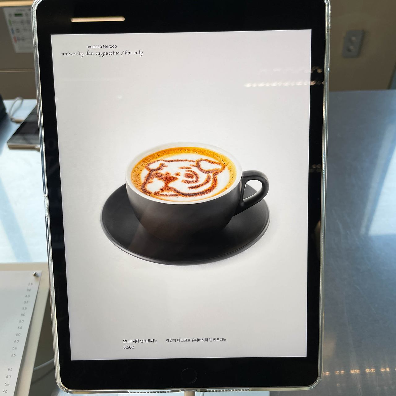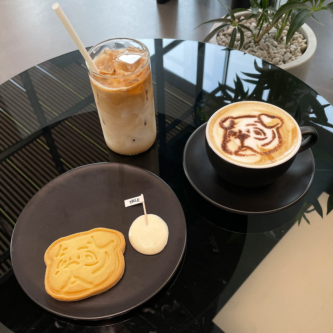 이번 예일 팝업도 예외는 아니었는데, 무신사와 브랜드가 협력해서 F&B 개발에 참여했다고. 카페에서는 예일만의 시그니쳐 메뉴도 판매 중이었다. 예일의 마스코트인 불독 댄이 들어간 커피와 쿠키. IP의 위력을 새삼 느낀다.