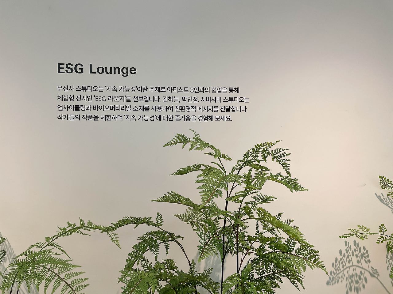 어딜 가나 빠지지 않는 ESG 경영. 기업의 지속가능성을 위해서는 친환경, 사회적 책임, 지배 구조를 개선을 염두에 두어야 한다는 내용. 여기에서 가장 주목받는 분야 중에 하나가 '친환경'이다. 이에 발맞춰 기업들이 친환경을 위해 다양한 활동을 하고 있는데, 그런 연장선 상의 ESG LOUNGE를 무신사 스튜디오에서 만날 수 있었다.