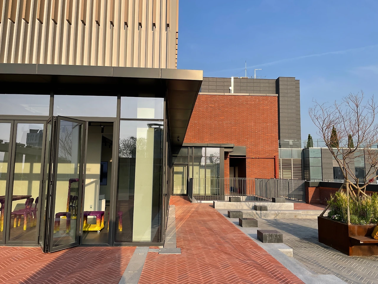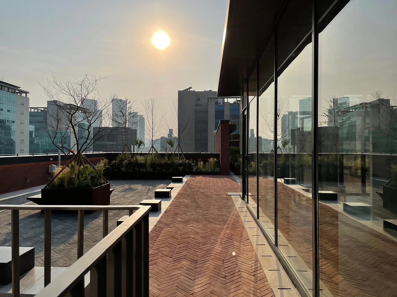 밖으로 나가면, 또 하나의 넓은 공간이 나타난다. 여기야 말로 진짜 테라스. 건물 옥상에서만 누릴 수 있는 공간. 주변에서 9층은 꽤 높은 건물에 속하기 때문에 막힘없이 보이는 성수의 전경. 잠시 앉아 성수동의 하늘을 보며 바람 좀 쐴 수 있겠다. 아직은 활성화되지 않았지만, 이곳에서 나중에 파티도 충분히 열릴 수 있겠다 싶다. 입주 브랜드를 위한 행사나, 외부인을 위한 무신사 스튜디오 이벤트도 가능하겠다.