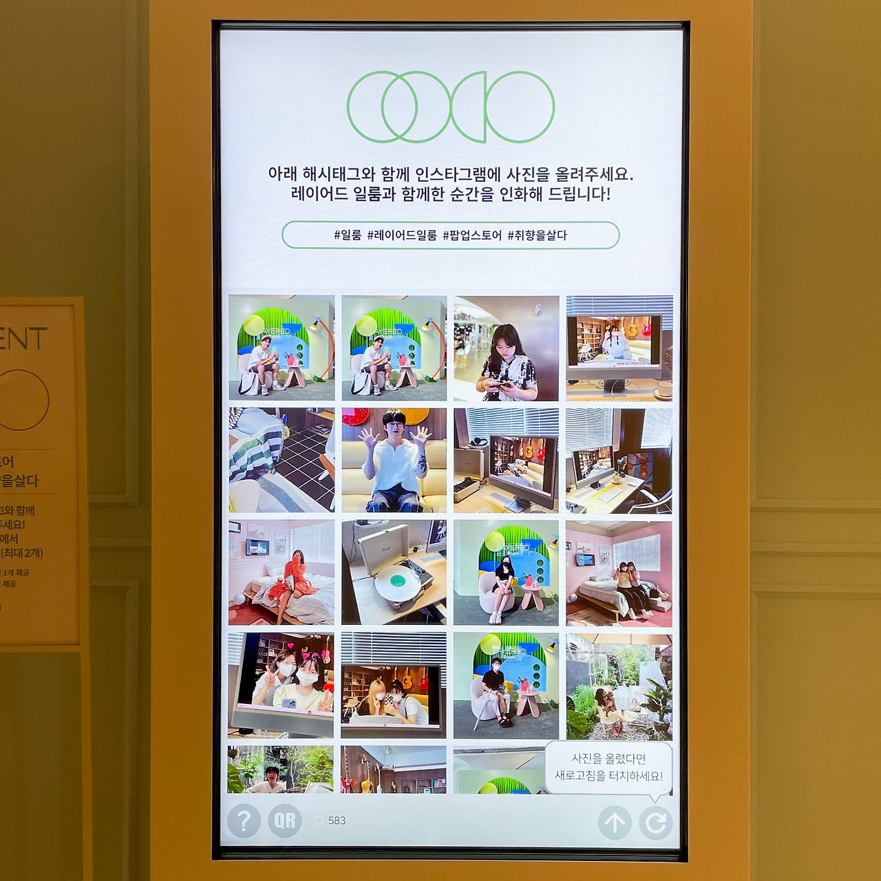 인증샷도 찰칵. 직원분께서 사진도 찍어준시는데, 세상에 팝업스토어에서 이렇게 잘 찍어주시는 분은 처음 봤다. 무엇보다 높이를 맞추려고 한 쪽 무릎을 땅에 내고 찍어주시는데 새삼 감동. 혹은 사진을 잘 아시는 분이시거나. 인증샷을 남겨서 인스타그램에 업로드 하면 자동으로 키오스크에서 연동되어서 사진을 출력할 수 있다. 한가지 디테일은 그냥 인쇄를 하는게 아니라 레이어드 일룸의 다양한 프레임을 선택할 수 있다. 이런 디테일은 대체 어디서 나오는가.. 덕분에 예쁜 사진 건져갑니다 :)