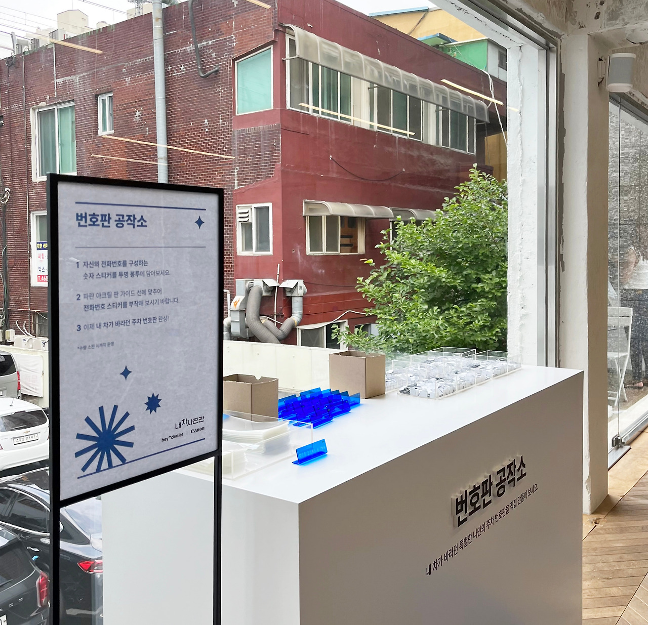 이름만 보고 번호판을 디자인할 수 있었나? 의문이었는데. 막상 가니 차량 번호판이 아니라 차주 핸드폰 번호판이었다. 운전석 앞 창가 앞에 긴급 연락처를 남겨놓는 경우가 있는데, 여기에 놓는 번호판을 만드는 것.