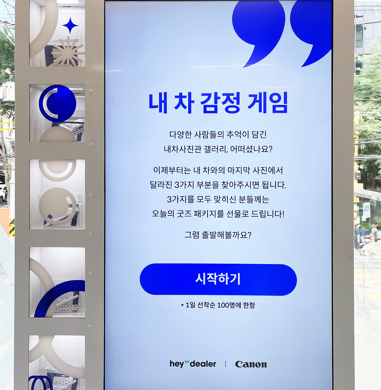 이렇게 풍성한 팝업스토어가 있었나 싶을 정도로 프로그램이 알차다. 물론 내차사진관까지 참여해서 더 그럴 수도 있겠지만, 사진 촬영 외에도, 셀프 카메라, 사진 인화 서비스, 자동차 틀린 그림 찾기, 캐논 체험 프로그램 등 코너 하나하나가 거를 타선이 없다. 그만큼 헤이딜러가 팝업스토어 기획에 엄청난 공을 들였다고 보인다. 헤이딜러의 브랜드 인지도 확대는 말할 것도 없고.