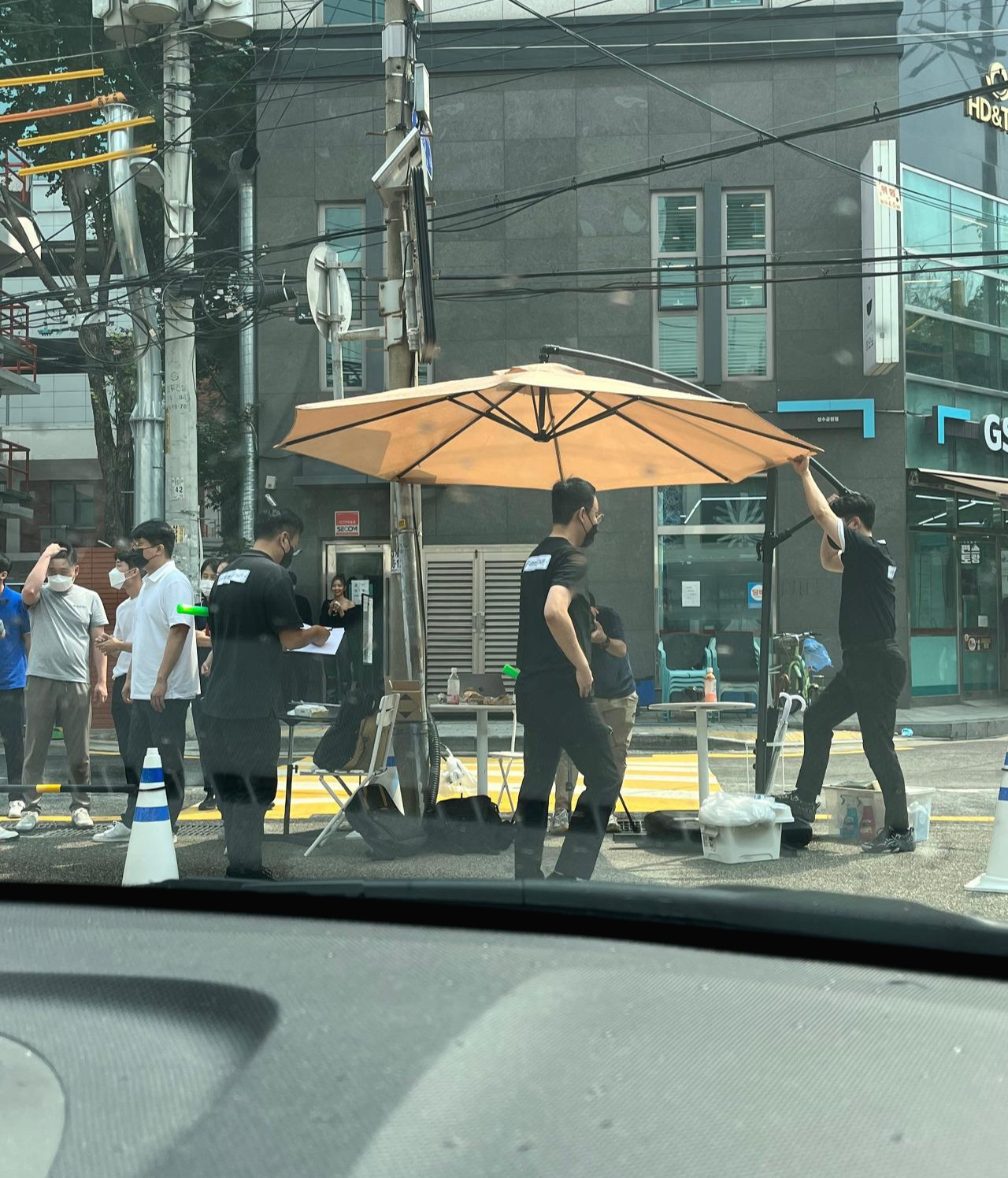 간단히 인사를 나누고, 차를 정해진 곳에 정차하고 밖으로 나왔다. 그리고 포토그래퍼님으로부터 간단한 설명 후에 바로 슈팅에 들어갔다. 찰칵, 찰칵, 셔터가 움직이기 시작한다. 사진도 사진인데, 많은 분들이 보고 있으니 잘 찍고 있는 건지, 이렇게 찍으면 되는 건지 괜스레 긴장 가득. 완전히 오픈된 공간이었기 때문에 지나가던 분들도 걸음을 멈추고 지켜보는 분도 많았다.