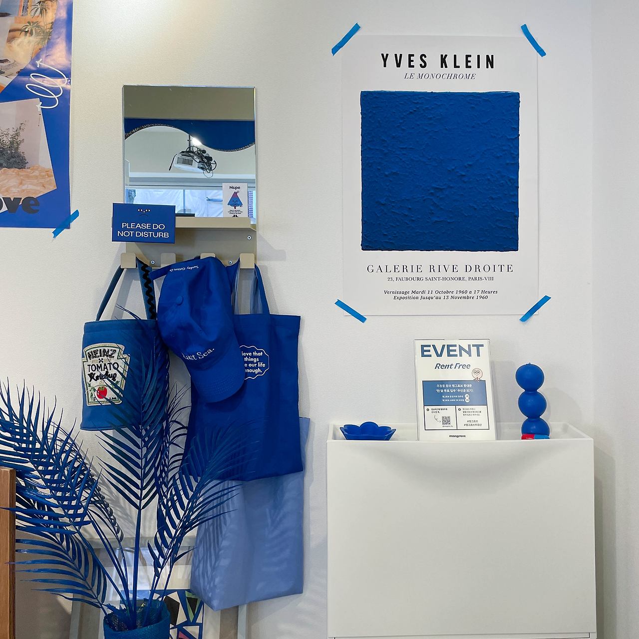 남자 방인 줄 알았는데, 하이힐이 있네? 현장에서는 몰랐지만, 사진을 발견하면서 알게 된 그림. 파란 컬러를 백방으로 구했을 VMD팀에서 얼마나 고생했을지 눈에 선하다. 그래도 자칫 어색할 수 있는 (방에서는 흔하지 않는) 컬러를 잘 사용해서 공간의 이미지를 더 감각적으로 만들었다.