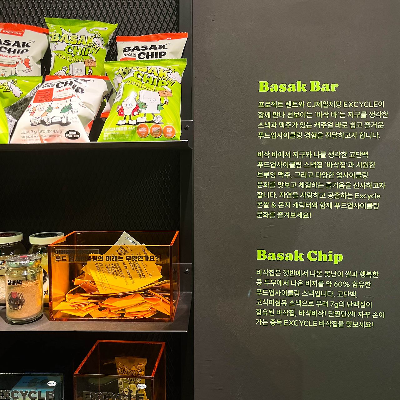 화제의 과자, 바삭칩. CJ 제일제당의 익사이클이 바삭칩을 소개하는 팝업스토어를 열었다. 과자뿐만 아니라 안주와 시원한 맥주를 함께할 수 있는 BASAKBAR 바삭바. 수많은 성수동의 맛집 중에서 바삭바는 어떤 매력을 보여줄까?