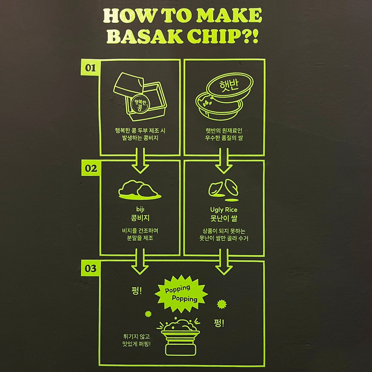 얼핏 보면 나초랑 비슷해 보이는 바삭칩. 직접 먹어보니 나초보다는 부드럽고 두께감이 있어서 오히려 식감이 좋았다. 또 먹기 전에 쌀 과자가 다 비슷하겠지 라는 편견이 있었는데. 막상 먹고 보니 쌀의 담백함과 콩비지의 고소함이 입안 가득히 느껴진다. 생각보다 맛있어서 놀랐다. 이게 바로 한국의 맛인가. 분명 아는 맛 같기도 한데 색다른 테이스트. 일단, 과자가 맛있으니 인기가 많은 이유를 알겠더라.