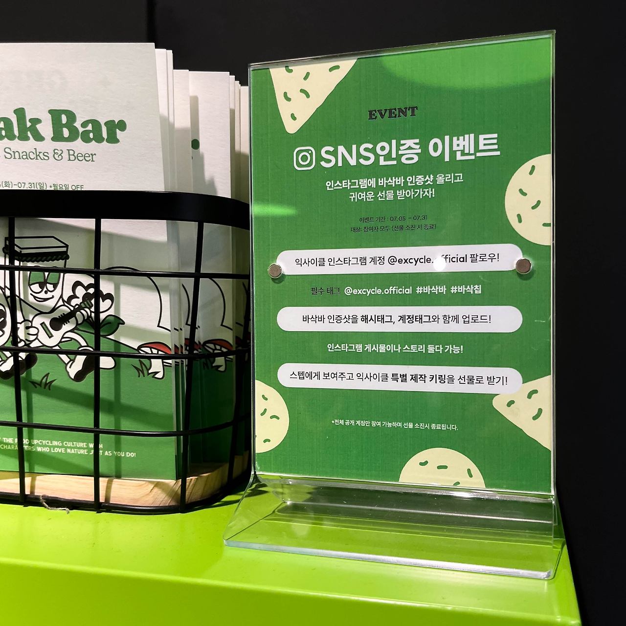 업사이클링 푸드라는 타이틀답게, 한쪽에는 다른 업사이클링 브랜드의 제품들도 함께 판매 중이었다. 자세히 보니 익사이클 굿즈도 있다. 바삭 'BAR'에 와서 물건을 구매하는 사람이 있을지는 모르겠지만, 이들과 함께 지구를 살리는 일에 동참하고 있다니 바람직한 브랜드들의 행보. 꼭, 물건이 아니라도 음식을 활용하는 업사이클링 푸드 제품들도 많아졌으면 좋겠다.