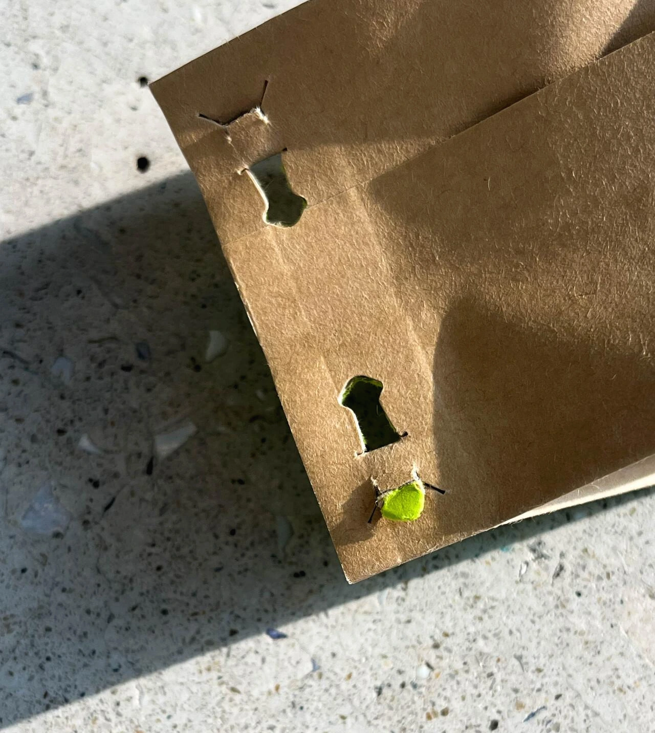 바삭칩 샘플을 뜯으려고 보는데, 보통 스탬플러가 박혀 있을 자리에 종이끼리 엮어 단단히 고정시켰다. 괜한 쓰레기 낭비도 없고, 자원도 아끼고. 업사이클링을 이야기하면서 사소한 디테일까지 신경 쓰는 부분에서 '익사이클링은 진심이구나'라는 생각이 절로 들더라. 누가 설명을 해주지도, 홍보를 하지도 않았지만 작은 곳에 숨어 있는 환경을 생각하는 마음. 그래서 더 응원하고 싶은 마음!