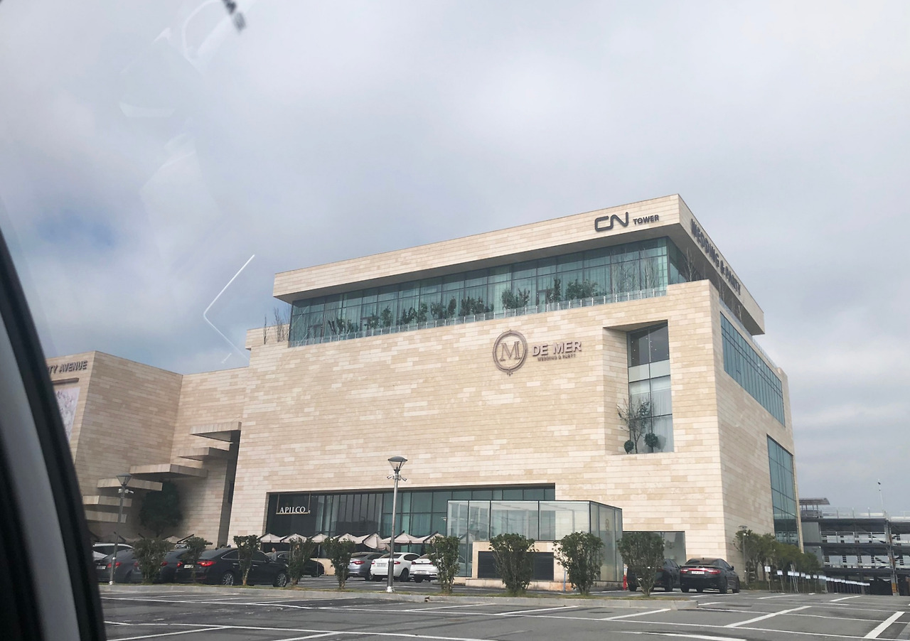 차를 타고 10분쯤 이동하니 차창 너머로 멀리 거대한 건물 하나가 보인다. 거대하다는 표현이 맞을 거다. 규모나 크기 면에서 압도적이었다. CN tower라고 적힌 건물 아래 'DE MER'라는 문구를 보니 말로만 듣던 드메르에 왔구나 싶었다. *CN은 드메르의 전신 천년 웨딩홀 이니셜에서 가져왔다고 한다. 막상 내려서 보니 생각보다 훨씬 크고 웅장했다. 모르긴 몰라도 단독 건물로 광주에 이런 건물을 있었던가. 무엇보다 이 큰 건물을 웨딩홀로만 쓴다는 사실.