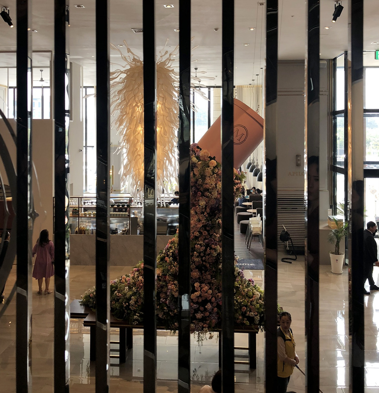 입구에 들어서자마자 거대한 꽃바구니가 맞이했다. 역시 사진에서도 봤지만 벌써 몇 번을 놀래는지. 와.. 소리가 절로 나왔다. 언젠가 서울로 7017 오픈했을 때, 신발들 쏟아지는 조형물이 생각나기도 하고. 이곳뿐만 아니라 드메르 이곳저곳에 포토존이 많았다. 벌써부터 하객들이 사진을 찍고 있었으니. 인스타용으로도 제격.