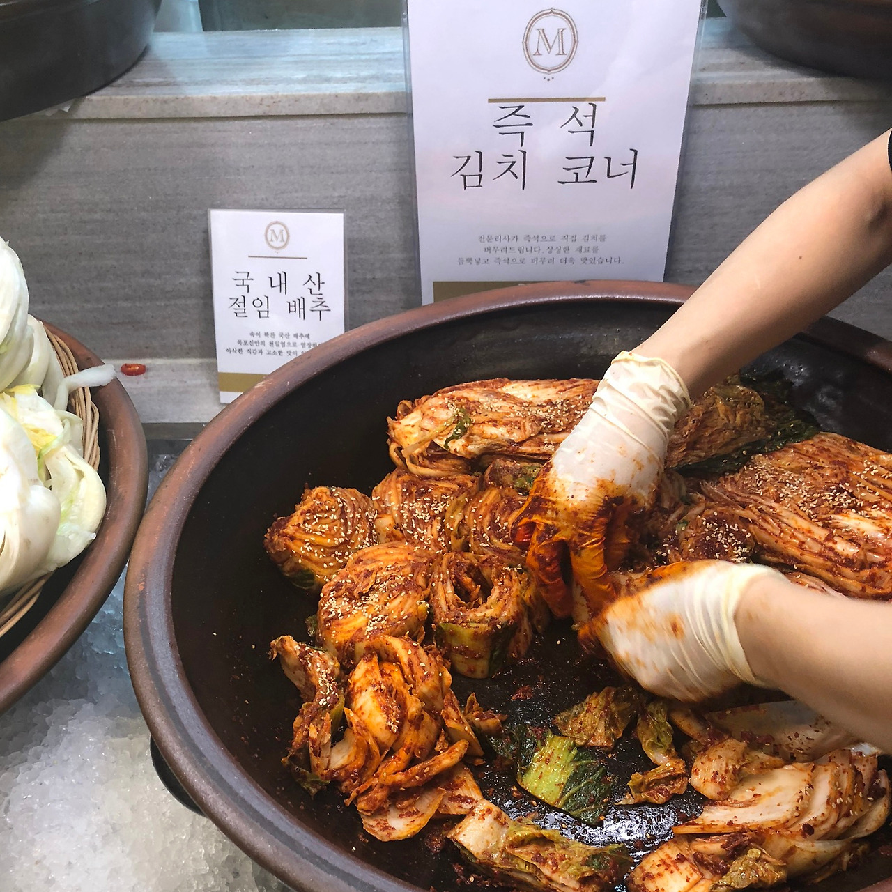 보기만 해도 눈이 즐거운 뷔페 식단이었는데, 각종 해산물, 육류, 야채는 물론이고 가짓수가 정말 어마어마했다. 가장 인상적이었던 부분은 한쪽에서 김치를 담그고 있었다는.. 김치를 즉석으로 담그는 식당이 있어?