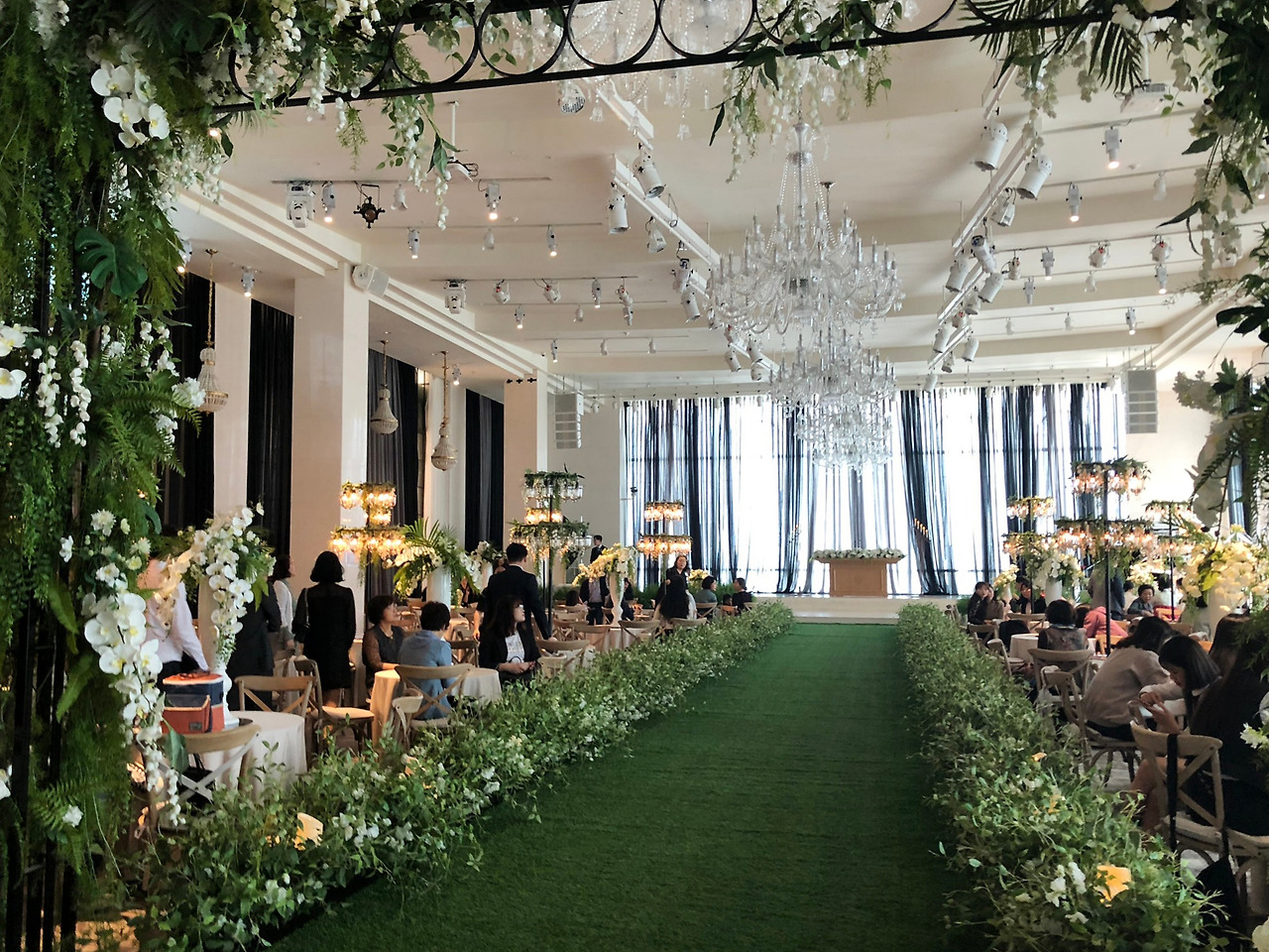 마지막으로 4층 예식장, 이곳은 야외 웨딩홀 분위기가 난다는 라비엔 홀이다. 야외 결혼식처럼 양쪽 창문으로 채광이 잔뜩 들어고 버진 로드며 테이블이며 식물들이 가득해서 흡사 야외에서 결혼하는 기분이 난다. 실제 사진으로도 미리 봤었지만, 실물로 보니 더 산뜻하고 청량감 넘치는 곳이었다. 야외 웨딩을 꿈꾸던 사람이라면 실내 웨딩과 잘 절충된 이 홀을 선택해도 되겠다.