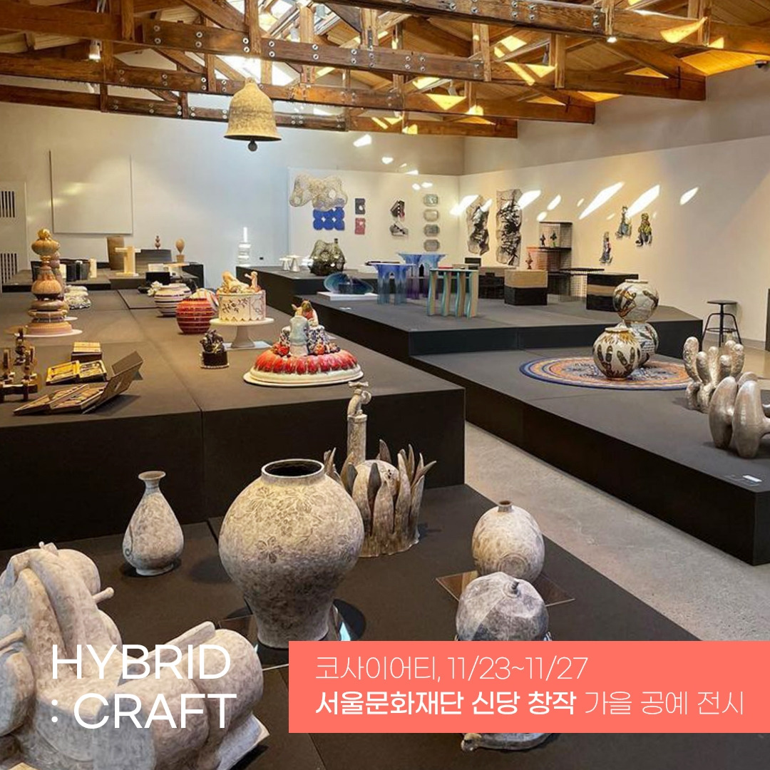 서울문화재단에서 신당 창작 기념 가을 공예 전시가 열립니다. 코사이어티에서 진행되는 이번 전시는 신당창작아케이드 13기 작가들의 전시로 하이브리드한 동시대의 공예 작품들을 만날 수 있습니다. 모던한 코사이어티의 공간과 전시의 조화가 매련적인 곳.