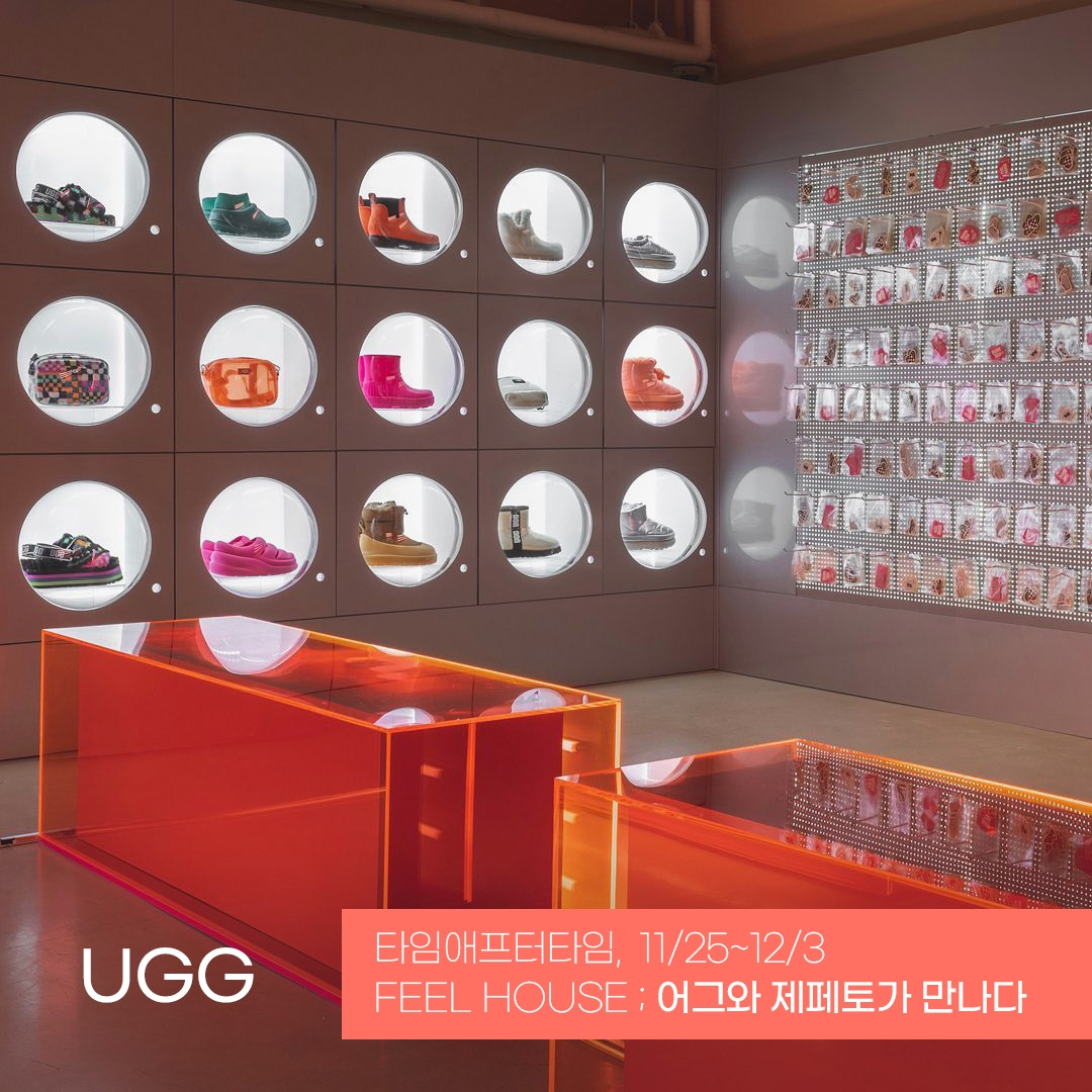 메타버스로 만나는 어그! 제페토 속으로 어그가 들어갔습니다. FW 시즌을 맞아 오픈한 FEEL HOUSE 는 과감한 공간 사용과 거대한 디스플레이로 어그의 몰입감을 높입니다. 특히, 아이템을 태그하면 스크린에 나타나는 제페토 캐릭터는 놀라운 기술과 패션의 조화를 보여주네요. 현실과 가상이 만난 또 다른 내 캐릭터와 멋진 사진을 남겨보세요.