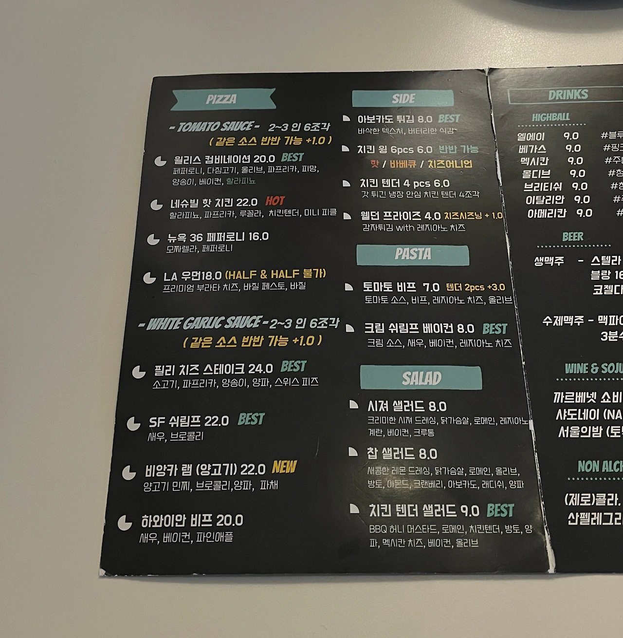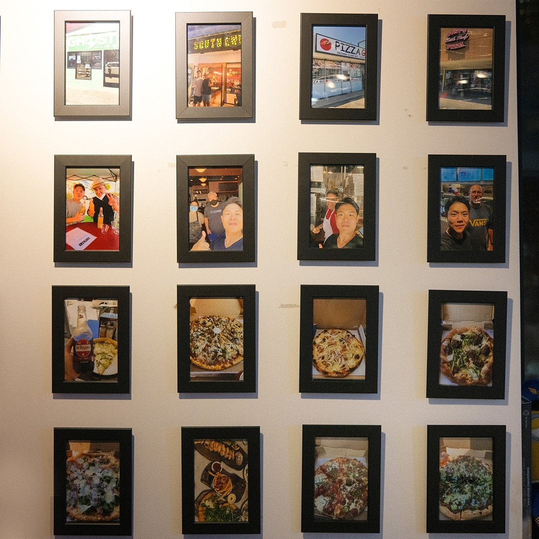매장 한 쪽에 사진들이 벽에 걸려있는데, 자세히 보니 피자 사진과 함께 데코 사진을 걸어놓은 게 아니라 가게 사장님으로 보이는 분이 다양한 외국인 들과 찍은 사진이 걸려있렀다. 윌리스 엘에이 피자 셰프는 미국 피자의 맛을 담기 위해 캘리포니아 70개 이상의 피자집을 돌며 현지 피자를 배우고 연구했다고 한다. 매장 안에도 각기 각색의 피자 가게에서 찍은 사진들이 보인다. 엘에이의 기운이 느껴져 더 믿음직스럽다.