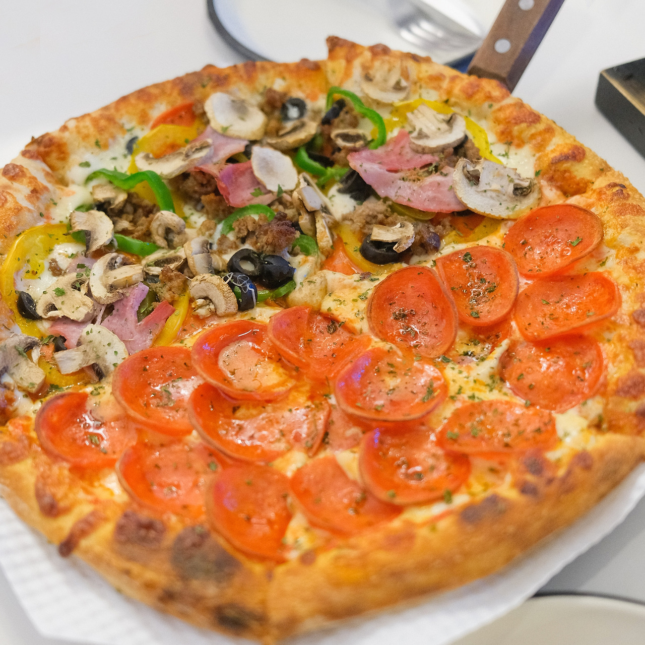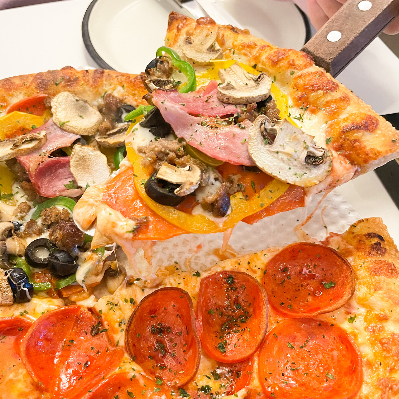 사실 엘에이의 피자 기억은 머릿속을 뒤집어봐도 잘 나지 않지만, 국내 피자와의 평범함과는 또 다른 피자 맛이 느껴졌다. 바삭한 도우와 부드러운 피자가 조화를 잘 이룬다. 콤비네이션의 익숙함에서 한 단계 더 나아간 풍미와, 페퍼로니의 짭조름함이 입맛을 더욱 돋우었다.