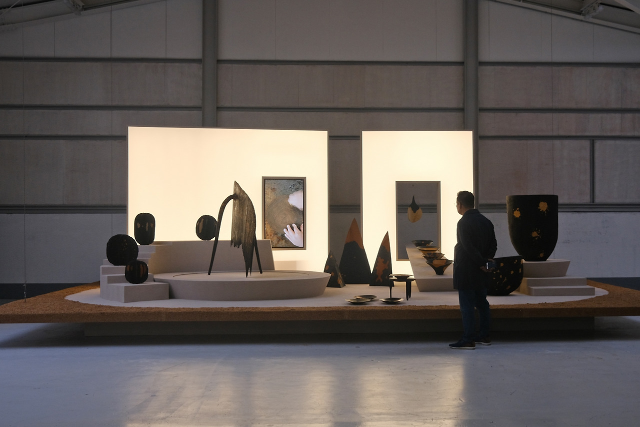 거대한 가마가 타오르듯이 불길을 배경으로 작품들이 전시. 양태오 디자이너가 기획한 전시로 나무의 물성으로부터 바라보는 사물의 내면을 조명한다. 따뜻한 배경을 톤으로 작품들을 바라만 봐도 기분이 편안해지는 기분.