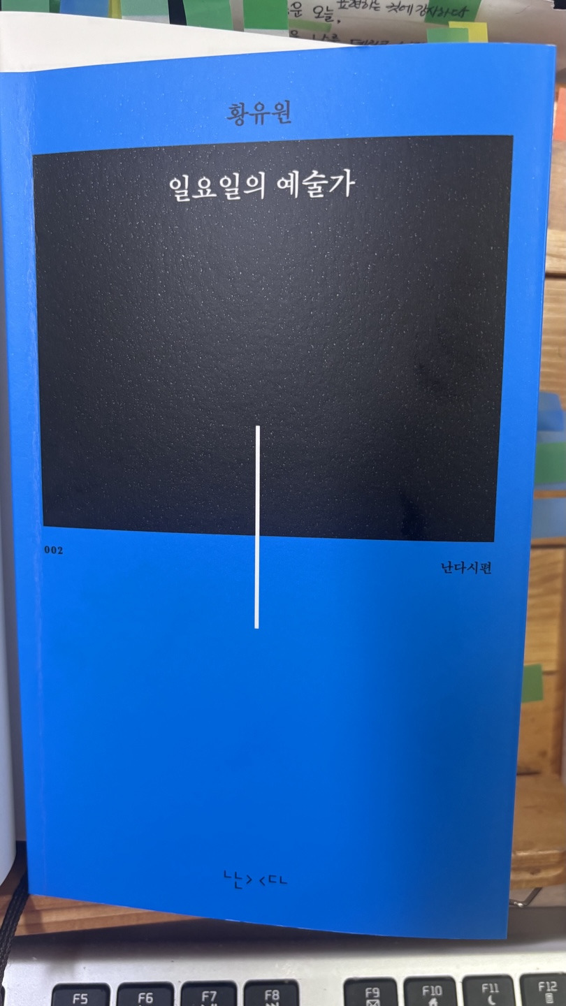 시를 쓸 때면, 쓰는 그 순간만큼은 시간이 사라진다. 통편집된 것처럼, 황홀히 타오르는 백열(白熱)과 함께 잠시 사라지는 머리. 하지만 그렇게 사라진 시간의 여파는 엄청나다. 그 후의 삶은 오직 그 시간을 되찾기 위해 존재하는 것처럼 느껴질 만큼. 나는 그 모든 시적 시간을 '일요일'이라고 부른다. 시를 거의 받아쓸 때 나는 나도 모르는 새에 '일요일의 예술가'가 되어 있다. <황유원의 편지 中>