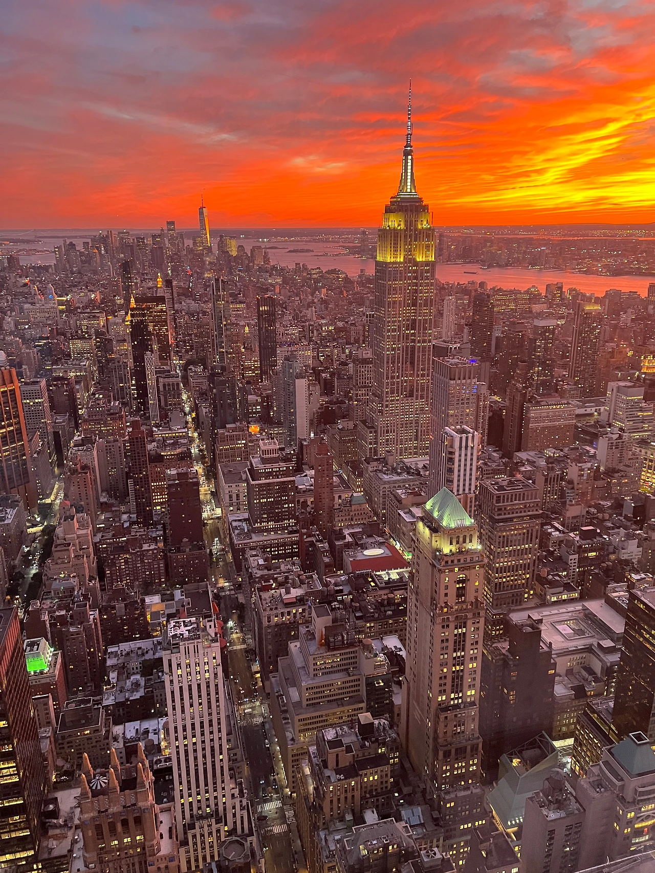 높은 곳으로 날 올려다 주는 것뿐인데. 그래서 그런지 평소 여행을 할 때 굳이 전망대를 가지 않았다. 이번 미국 여행은 남편이 거의 대부분의 일정을 계획했는데 전망대 입장료가 7만 원가량 한다는 말을 듣고 굳이 가야 할까 고민했다. 7만 원이면 근사한 밥 한 끼를 먹을 수 있는데 경치는 뭐 높은 곳 아무 데나 오르면 볼 수 있는 거 아닌가 싶었다. 그랬지만 뉴욕은 야경이 유명하고 관광객에게 위험할 수 있는 뉴욕에서의 저녁 일정을 비교적 안전하게 보내기 위해서 전망대에 가보기로 했다.