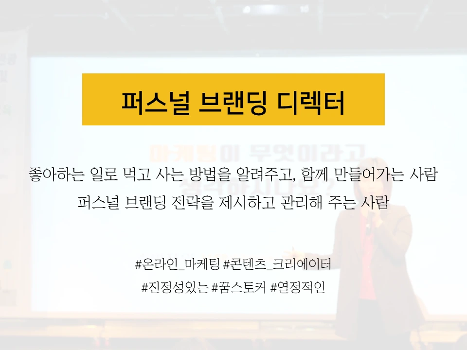 퍼스널 브랜딩 디렉터, 현재 be.star라는 퍼스널 브랜딩 전문 기업을 운영하고 있다.