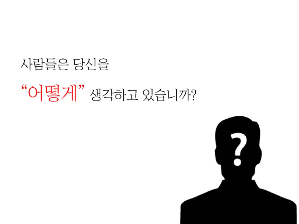 그리고 나의 특성과 성향을 정리해 보아야 하는데요, 이때에는 내가 생각하는 나도 중요하지만 사람들이 생각하는 나, 즉 나의 이미지에 대해서도 알아볼 필요가 있습니다. 결국 브랜딩이란 나를 상대방에게 인식시키는 과정이라는 사실을 항상 염두에 두셔야 합니다. 제아무리 대단한 능력을 가진 사람이라도 사람들이 그렇게 생각하지 않으면 아무런 소용이 없습니다.