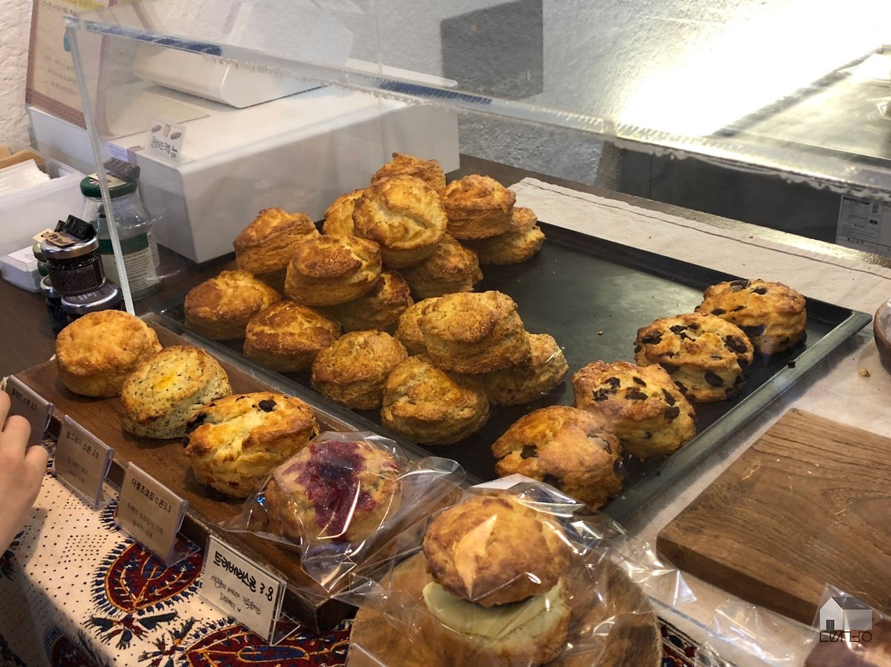 나는 초코집 스콘 2개와 앙버터 스콘 2개를 샀다. 스콘으로 유명한 집답게 스콘은 역시 맛있다. 물론 조금 식은 다음에 먹어서 나온 뒤 바로 먹은 것보다는 맛이 덜했겠지만, 그래도 맛잇다. 겉은 적당히 바삭하고 속은 적당히 퍽퍽하면서 부드럽고 고소했다. 특히 앙버터 스콘은 팥의 달달함과 버터의 느끼함, 고소함이 잘 어우러져 퍽퍽한 스콘에 포인트가 되어 준다. 초코집 스콘도 균형있게 박혀 있는 초코집이 조금 질릴 만한 스콘을 덜 질리게 만들어 준다.