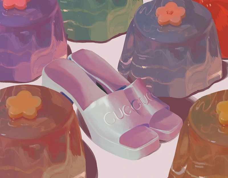 이와 더불어 같이 '젤리슈즈'로 묶여서 유행을 타고 있는 아이템은 '러버 슈즈'이다. 말랑말랑한 젤리 같으면서도 포근한 마시멜로우 같은 러버 슈즈는 그 이름처럼 사랑스럽다. 그중 돋보이는 것은 구찌(GUCCI)의 러버 슬라이드! 파스텔톤의 컬러에 구찌 로고가 사랑스럽게 박혀 있다. 적당한 굽과 함께 폭신하면서도 레트로한 무드를 즐겨 보자.