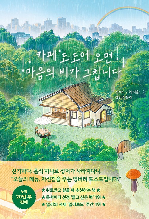 기본적으로 출간하면 무조건 팔리는 유형의 소설 중 하나입니다. 제목과 표지, 그리고 설정이 기본은 먹고 들어갈 책이라는 느낌이 팍팍 옵니다. 시메노 나기는 20만부를 팔아재낀 <카페 도도>의 두 번째 이야기라고 합니다. 조금 내용을 보아하니 정말 제대로 힐링 해주는 책이 아닐까 싶습니다. 1편이 따뜻한 힐링에 초점을 맞추었다면 이번 소설은 '상처 치유'가 초점이라고 하네요.
