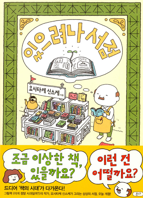 요시타케 신스케는 "이게 정말 사과일까?" 시리즈로 유명한 저자입니다. 최근엔 드디어 책과 서점에 관련된 이야기가 출간되어서 사지 않을 수 없었습니다. 솔직히 너무 금방 읽는 분량이라 구매보다는 어떻게든 그냥 읽어보고 싶은 마음도 있었지만 워낙 애정 하는 작가기도 하고 아이들까지 좋아하기 때문에 구매해서 소장 할 수 밖에 없었습니다.