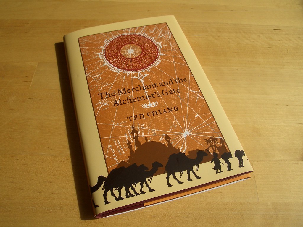 첫 작품 [상인과 연금술사의 문]에서는 특정한 시점의 과거나 미래로 갈 수 있는 시간의 문이 존재한다면 인간이 자신의 과거를 바꿔 미래를 변화시킬 수 있을 것인가의 문제를 다루고 있습니다. 여기에 한 발짝 더 나가 미래를 변화시키지 못한다는 것을 안다면 그럼에도 시도할 것인가?의 질문을 던지고 있어요. 그뿐 아니라 SF에서 흔히 다루는 시간 여행과 타임 루프의 문제를 아라비안나이트 이야기를 접목함으로써 독자의 이해를 돕고, 이야기를 재미있게 해주는 등 테드 창 방식으로 독특하게 재해석하고 있습니다. 독자로 하여금 '나였다면 어떻게 했을까?'라는 생각을 하게끔 만드는 힘이 있는 흥미로운 소설입니다.