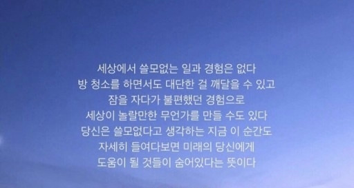 인생에 모든 경험은 다 가치가 있다