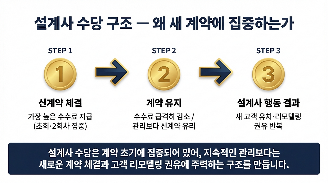 기존 고객이 계속 보험료를 내도 설계사에게 들어오는 돈은 점점 줄어듭니다. 첫 계약이 가장 수수료가 높고, 시간이 갈수록 낮아집니다. 유지 관리를 아무리 잘해도, 새로운 계약을 하나 따내는 것만 못합니다.