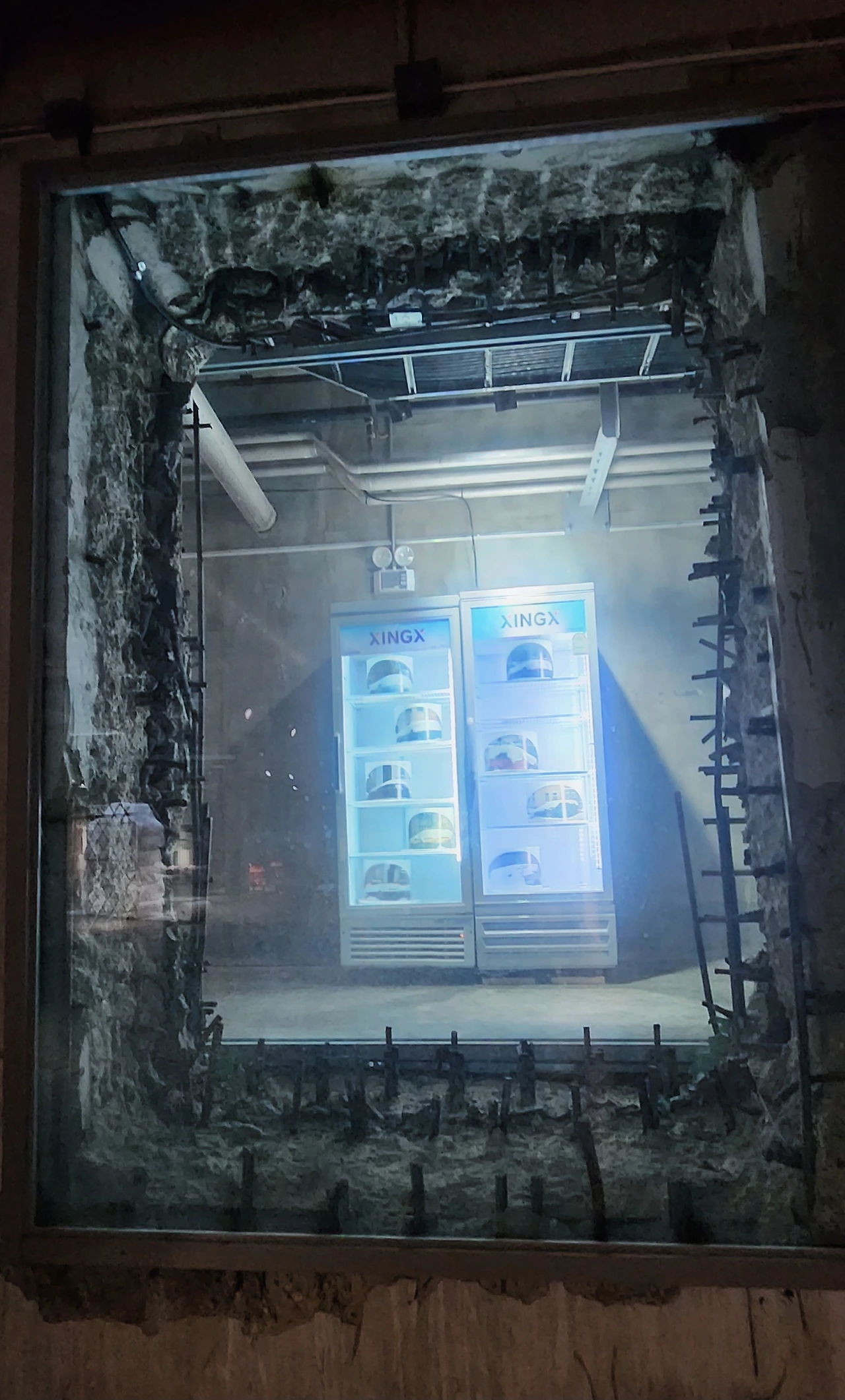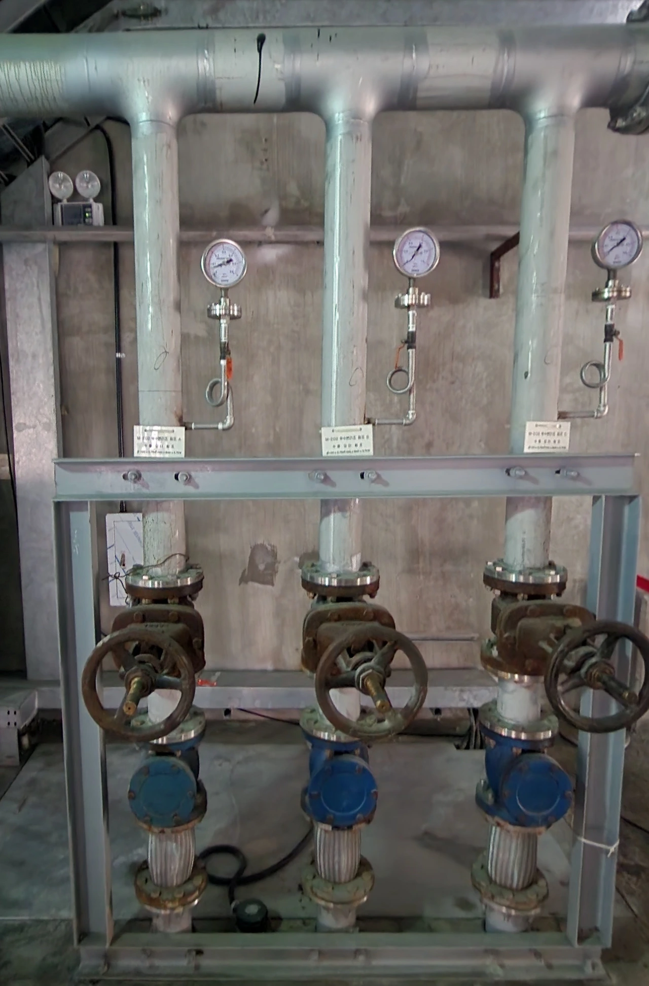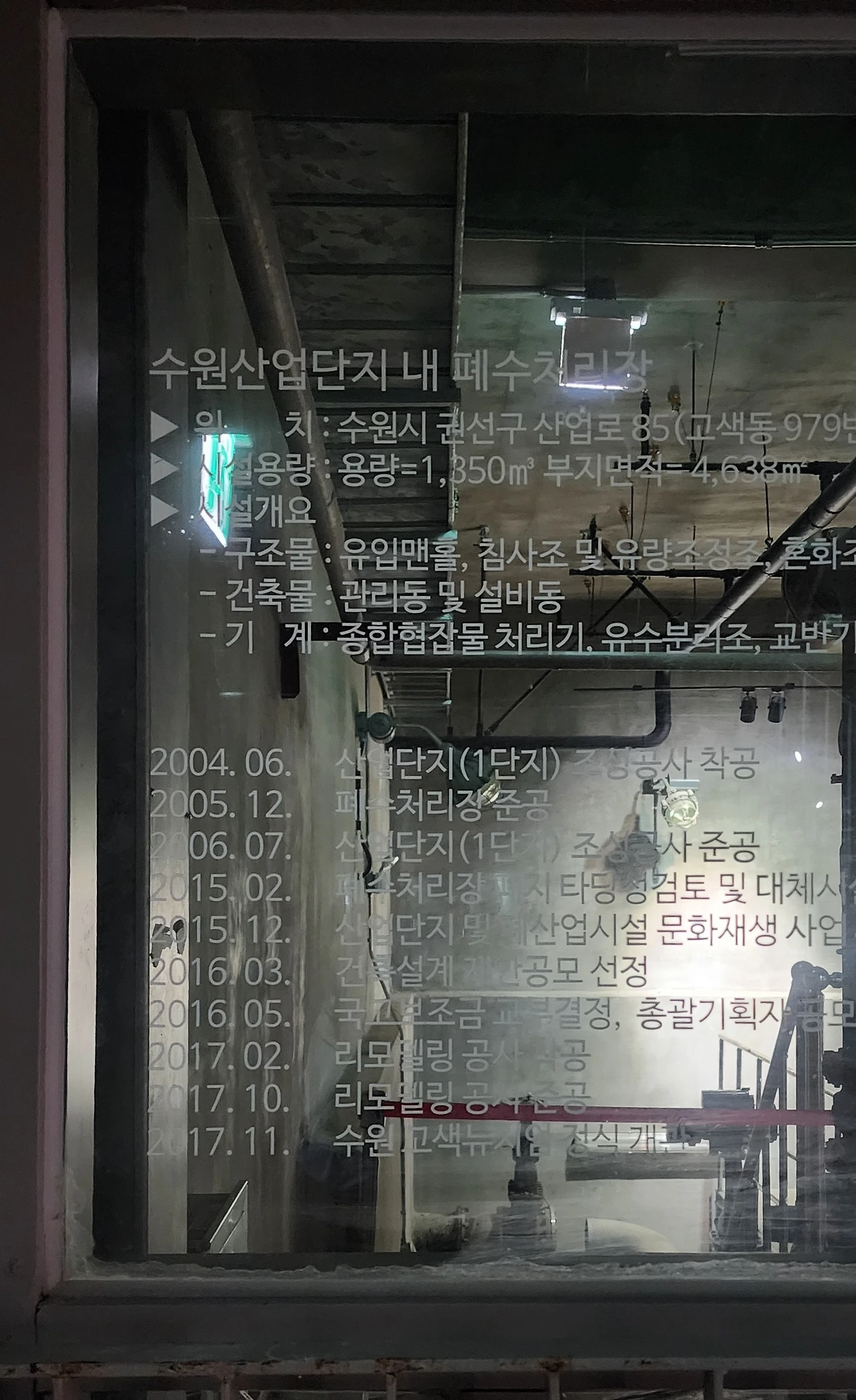 탱크 사이로 하얀 타일로 꾸민 기다란 복도가 보인다. 중간에 과거의 폐수처리장 시설인 배관이나 배수펌프가 보존되어 있는데 처음 보는 풍경이라 낯설면서도 신기했다. 복도를 따라 들어가 유리문을 여니 전시 작품 사이로 당시의 시설물들이 남아있다.