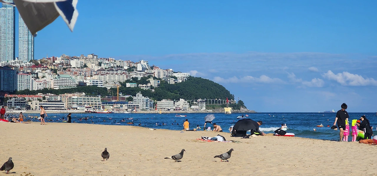 파란 바다 옆 빨강 파라솔은 서로 대비되어 웃음소리처럼 명랑했다. 왼쪽 해안선 끝 달맞이 고개에 모여 있는 집들은 이탈리아 아말피 해변처럼 이국적으로 보였다. 파라솔 아래 선베드에 자리를 잡았다. 주변 파라솔마다 앉은 외국인을 보니 우리가 이방인이 된 기분이 들었다. 파라솔 아래 앉아있으면 바람이 수시로 다녀가며 따가운 햇빛을 밀어냈다.