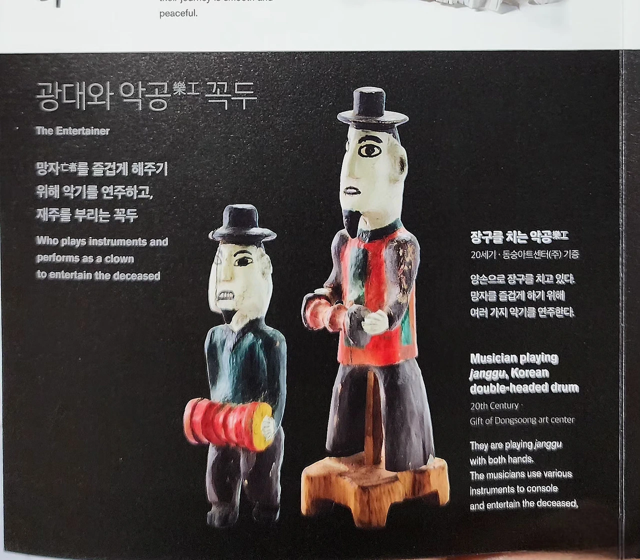 전시 설명에 의하면, 살아있는 자들이 죽은 이와 죽음이라는 여행을 같이 할 수 없어 꼭두를