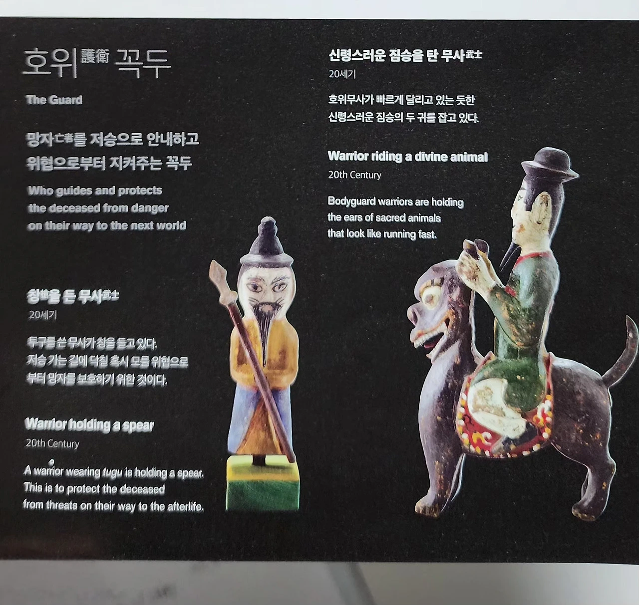 상여가 제 할 일을 마치면 꼭두와 함께 소각했습니다. 다행히 꼭두가 재사용되면서 오늘까지 남아있는 작품을 전시를 통해 보게 됐네요.