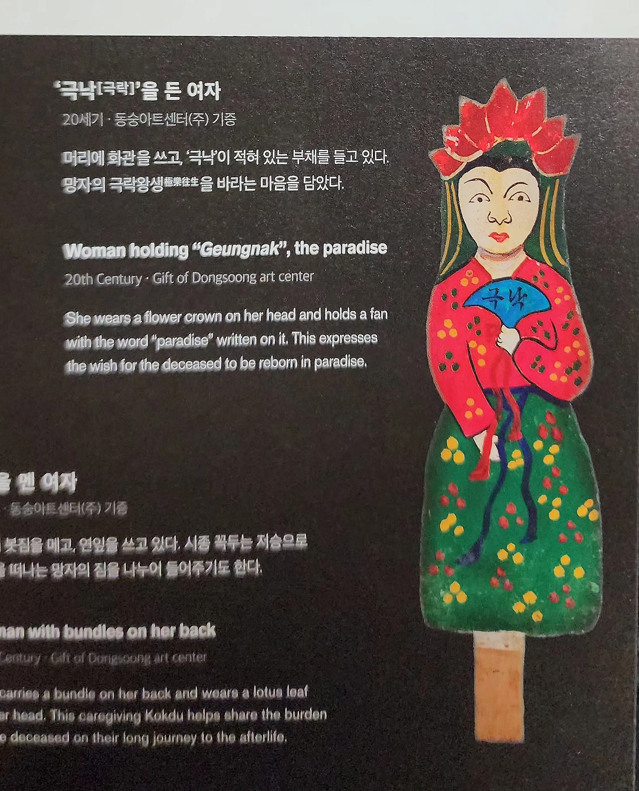 1층 기획 전시실 1관에서 전시 중인 '꼭두'는 동숭아트센터 대표이자 꼭두박물관 관장인 김옥랑 옥랑문화재단 이사장이 기증하여 열게 된 특별전입니다.